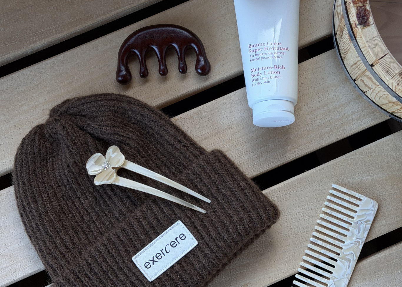 Rib Fold Over Pants - Honey