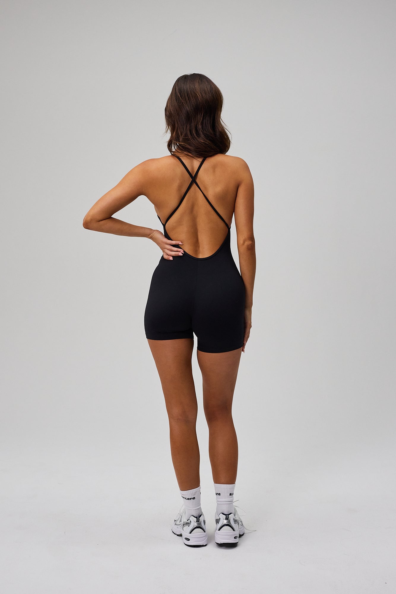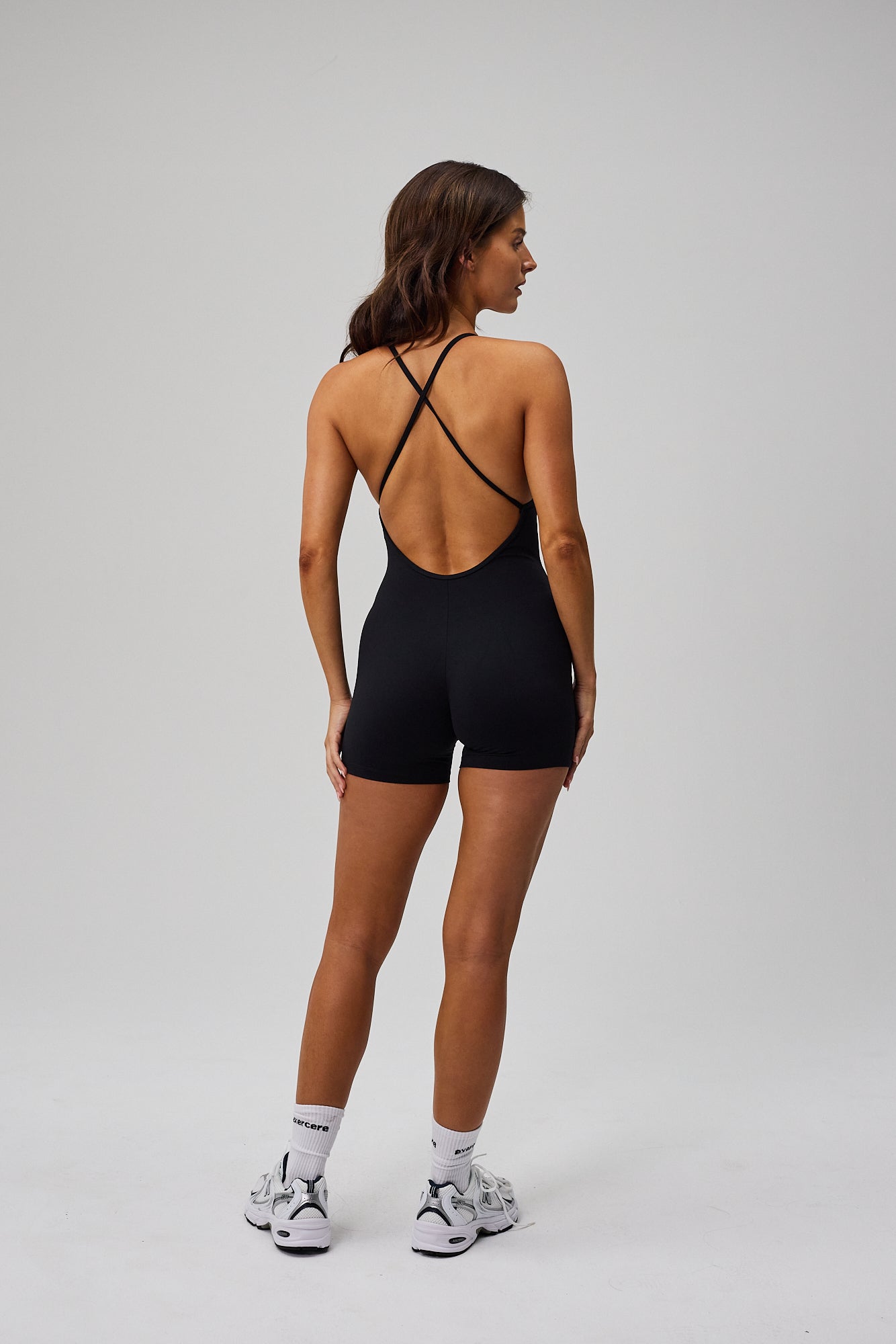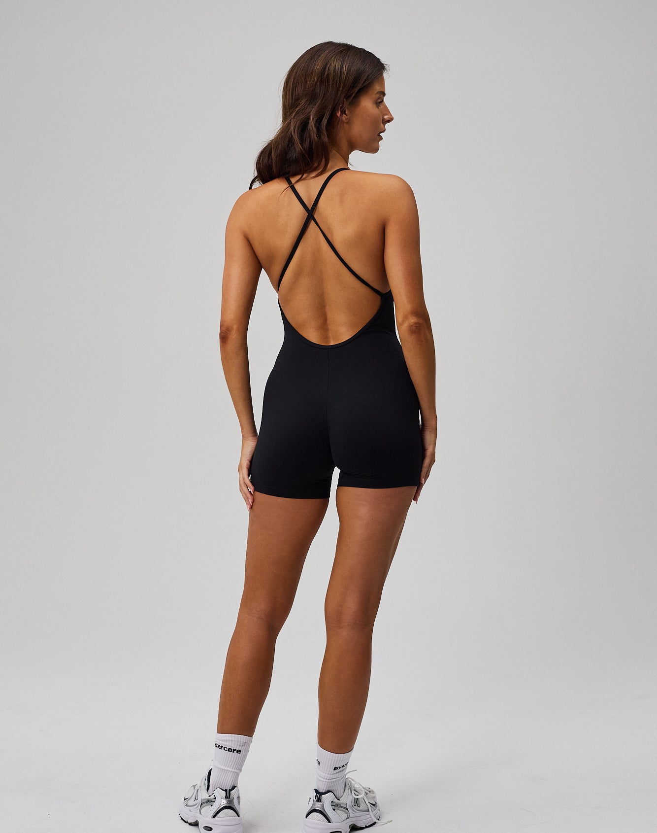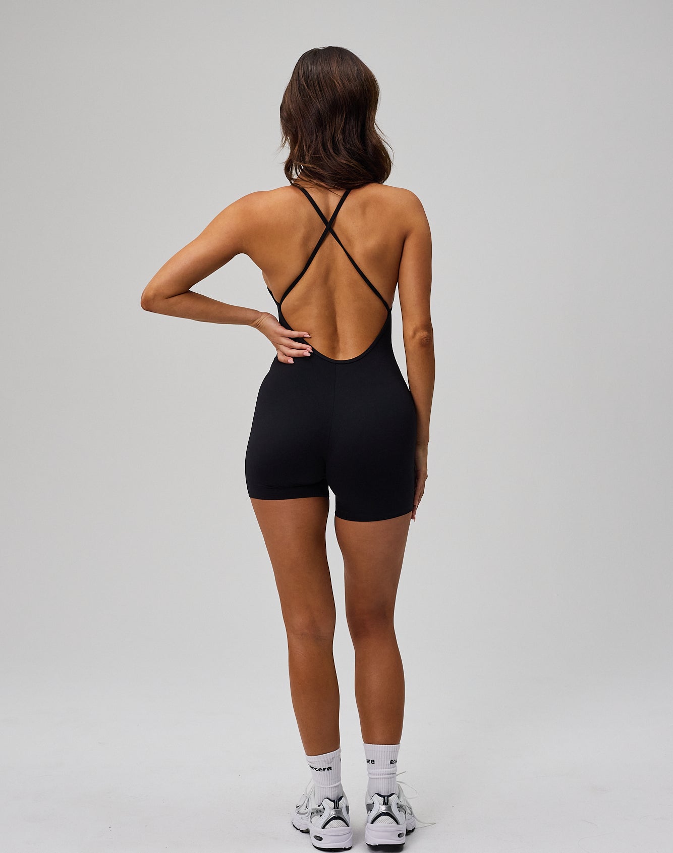 Luna Cross Back Playsuit forener funktion og æstetik i et elegant og alsidigt design, skabt til bevægelse og komfort. Med sit dybe rygsnit og fine krydsede stropper giver playsuiten et feminint og luftigt udtryk, der gør den velegnet til både træning og afslapning.