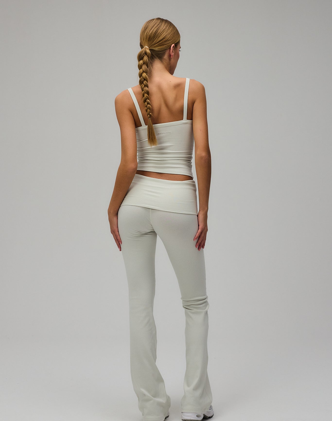 Den foldbare talje giver mulighed for at justere silhuetten og skabe variation i udtrykket, men den tætsiddende, men komfortable form følger kroppens linjer uden at føles begrænsende. Rib Fold Over Pants forener blødhed og enkelhed i en stilren og alsidig style, der naturligt indgår i både afslappede og aktive øjeblikke.