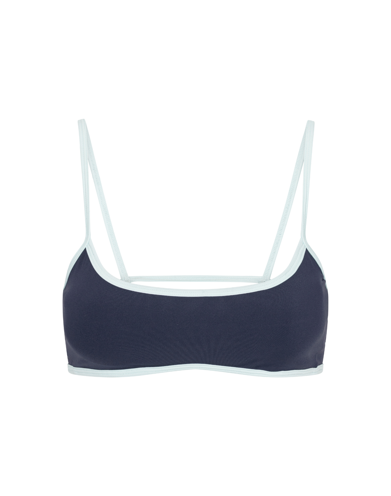 OBS! Særlige instrukser med Luna Bra - Navy. For at bevare kontrasten i mellem Navy og Crystal Blue anbefaler vi vask i hånden.