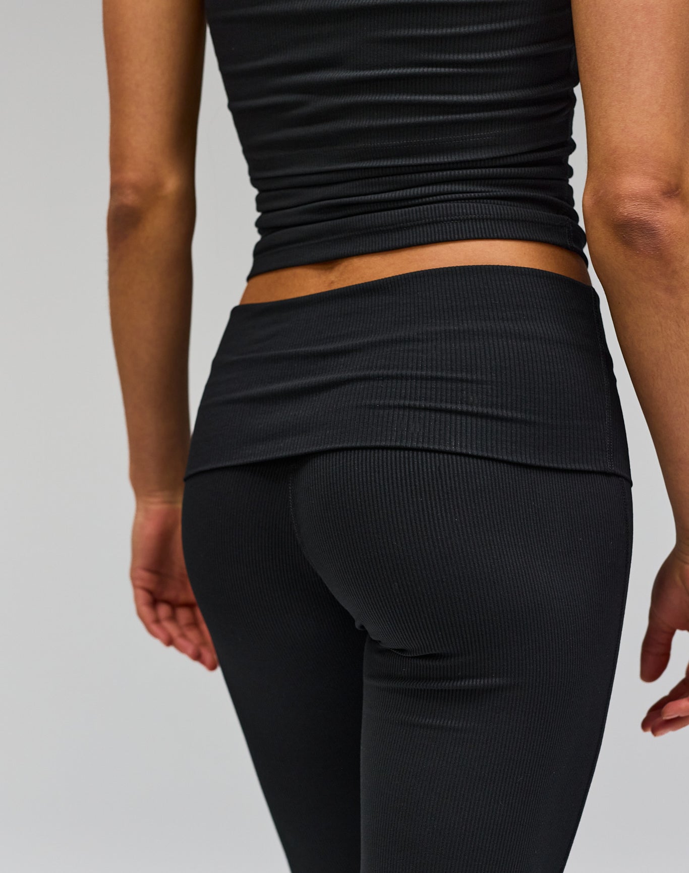 Den foldbare talje giver mulighed for at justere silhuetten og skabe variation i udtrykket, men den tætsiddende, men komfortable form følger kroppens linjer uden at føles begrænsende. Rib Fold Over Pants forener blødhed og enkelhed i en stilren og alsidig style, der naturligt indgår i både afslappede og aktive øjeblikke.