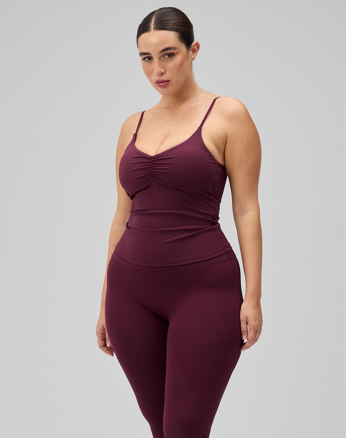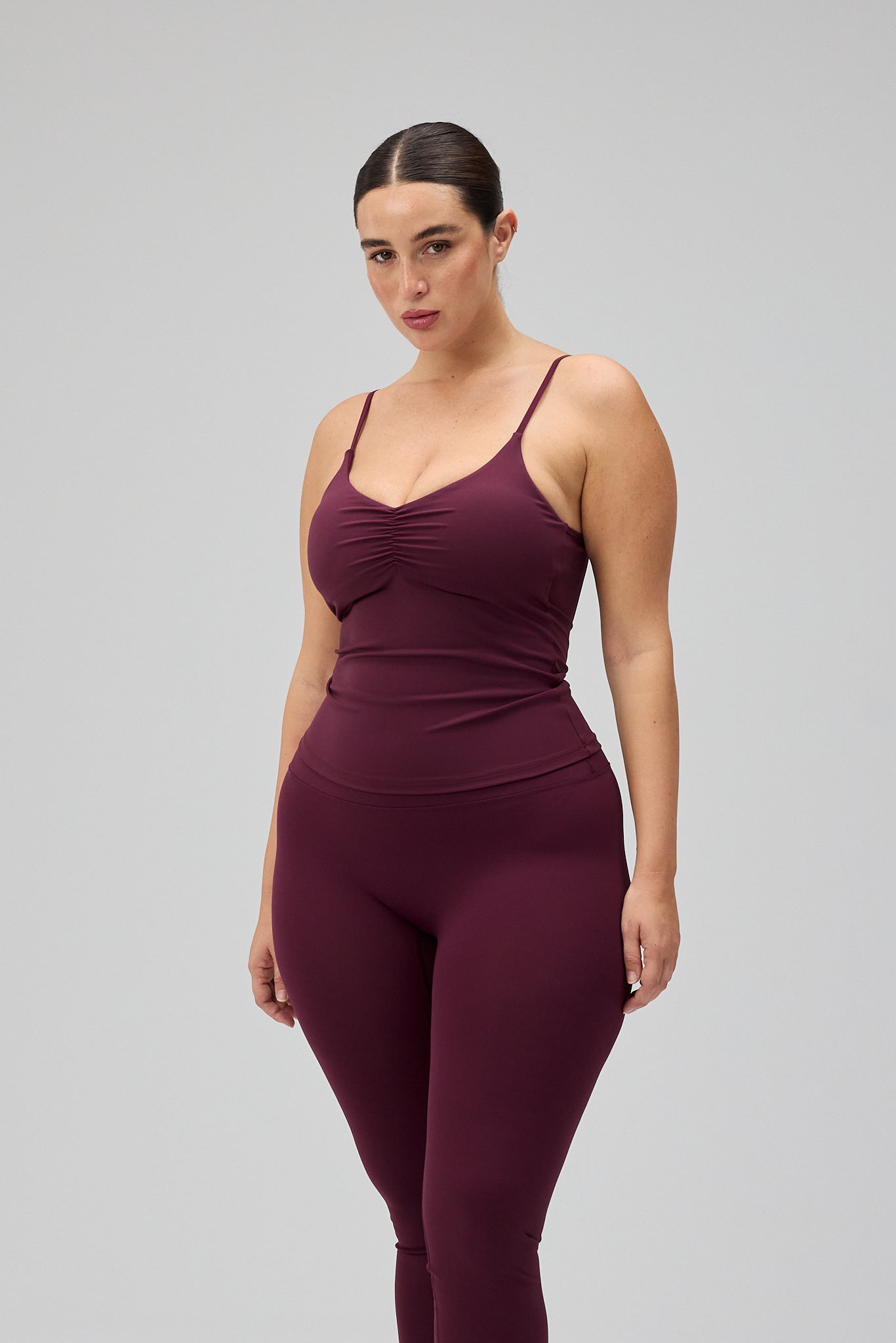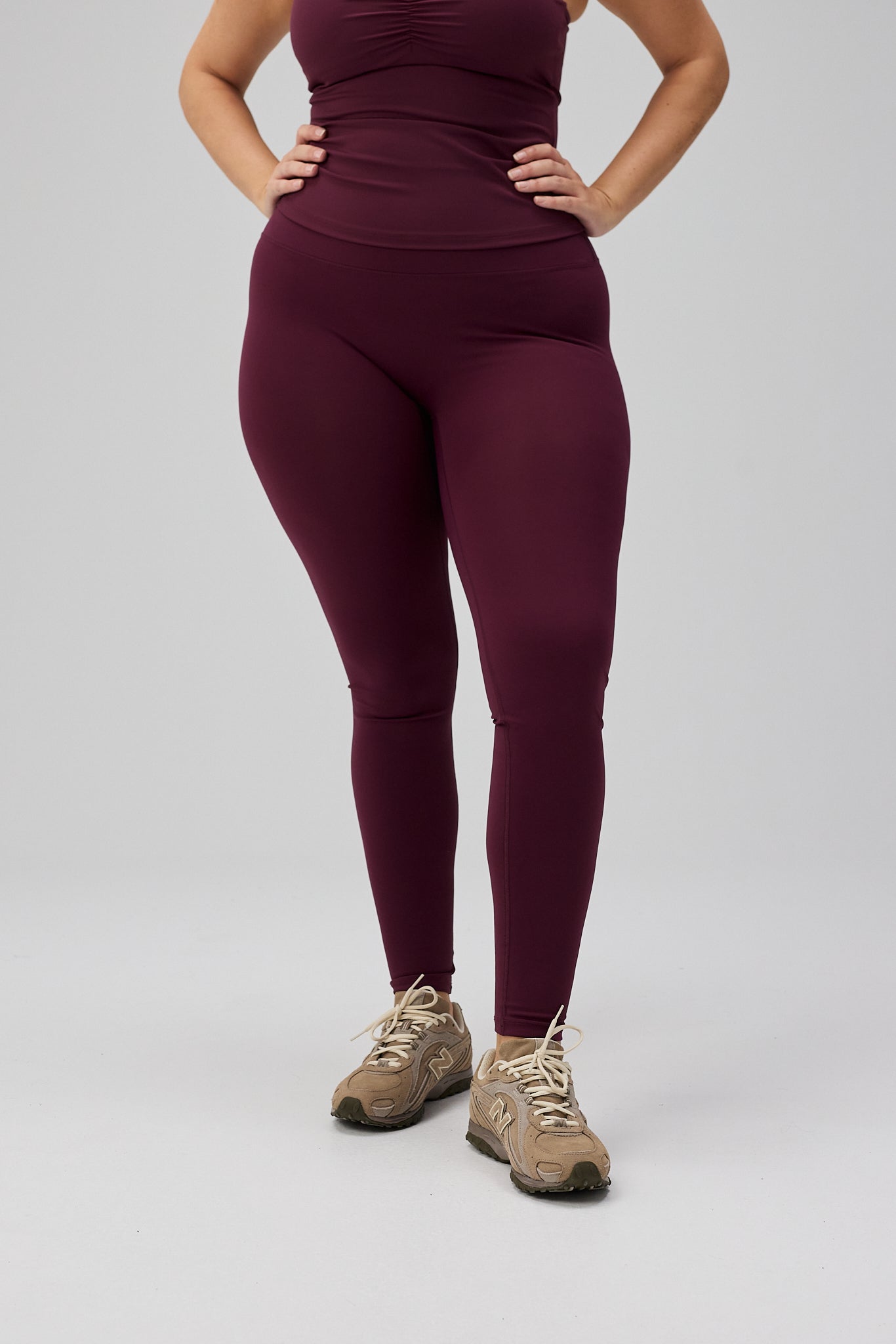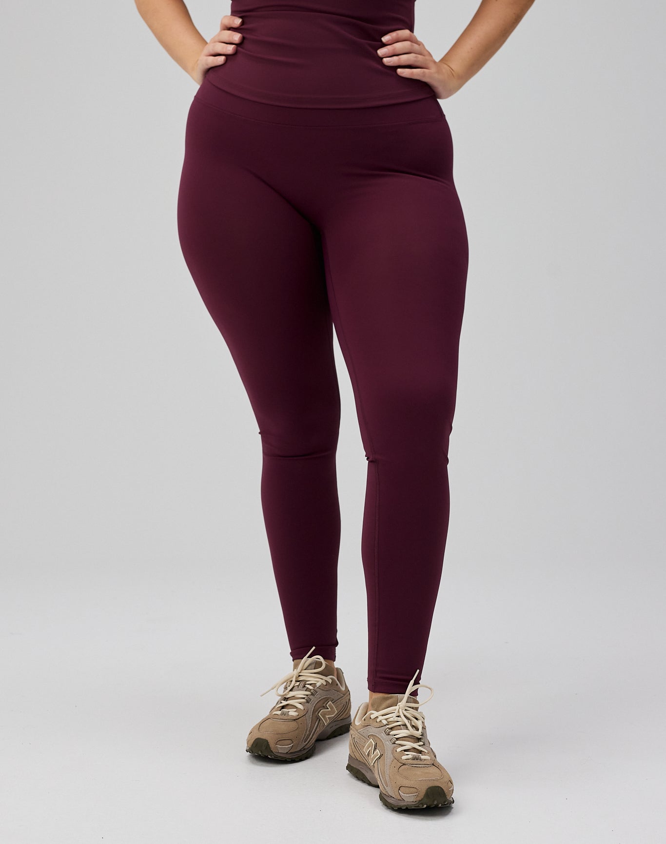 - Model har Ultra Neaty Tights, Deep Plum på, og bruger størrelse M