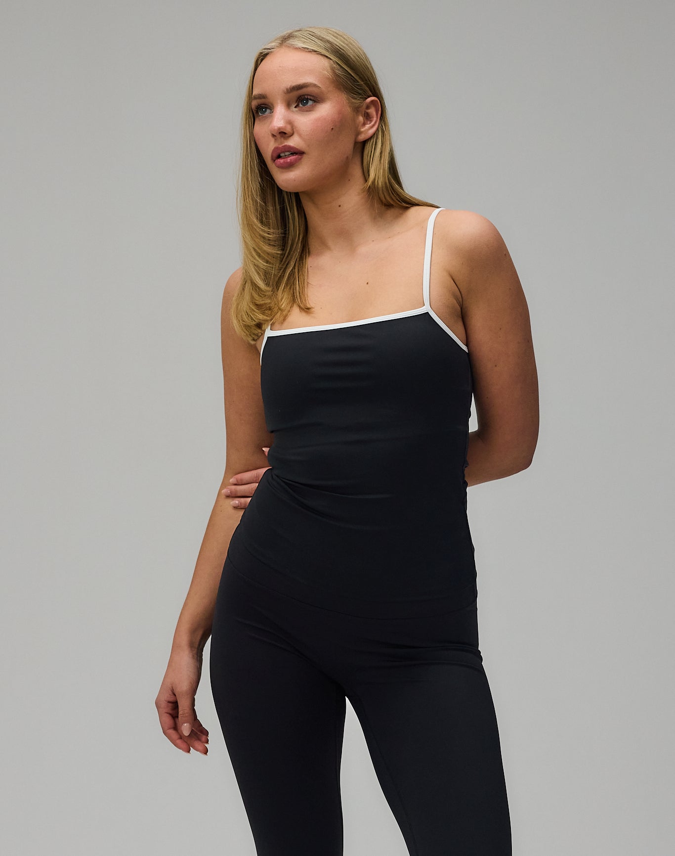 Active Tank Top forener et minimalistisk design med gennemtænkte detaljer og et tidløst udtryk. Den tætsiddende pasform fremhæver kroppens naturlige linjer og skaber en elegant, strømlinet silhuet, mens kontrastkanten tilfører et diskret, men karakterfuldt element til det enkle design.