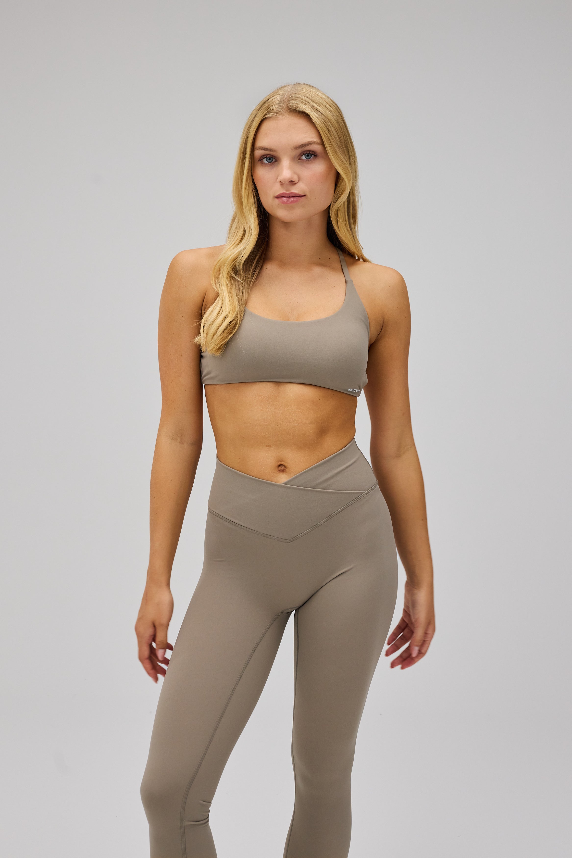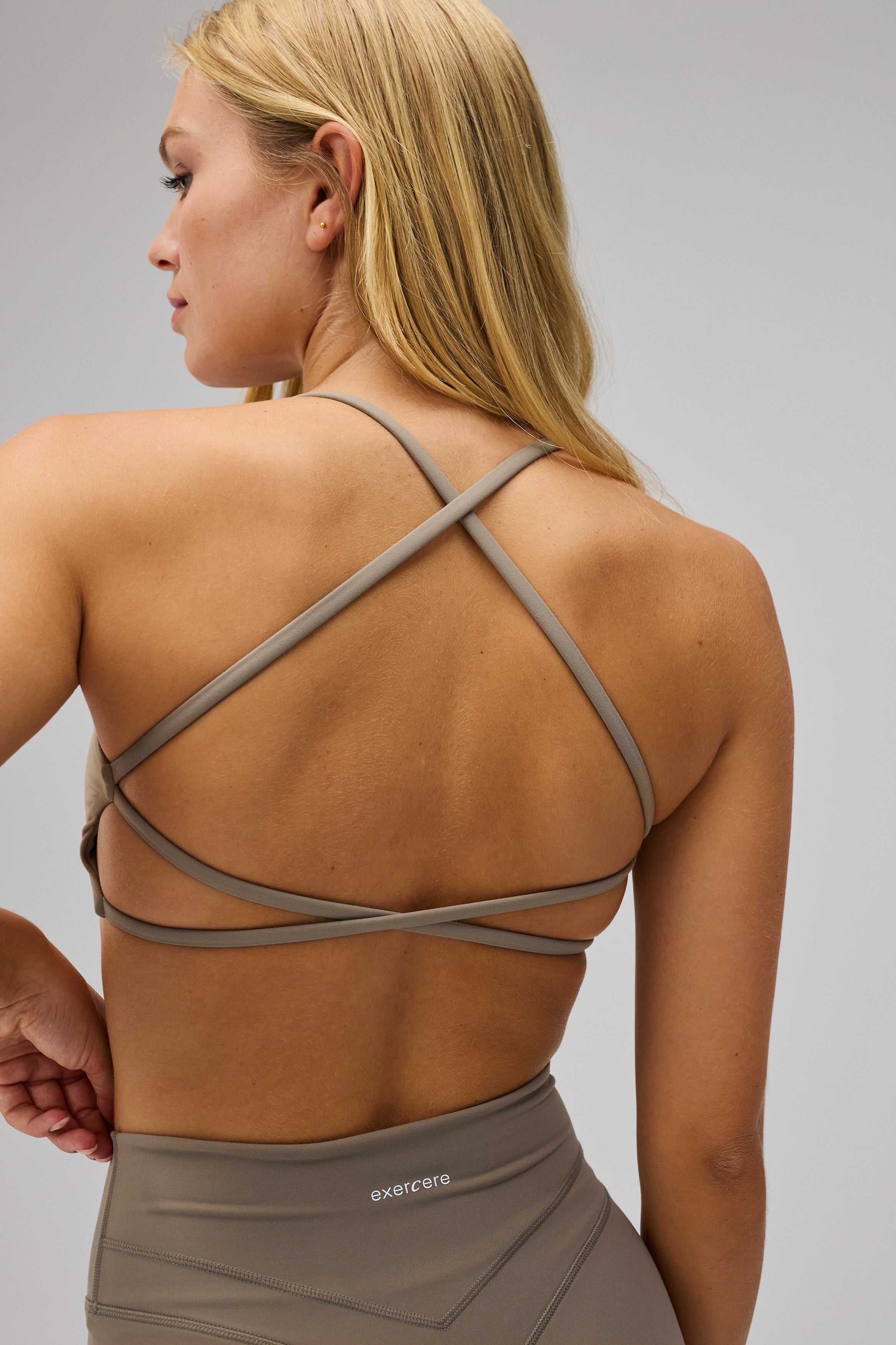 - Model har Sculpt Bra, Sand Beige på og bruger størrelse S