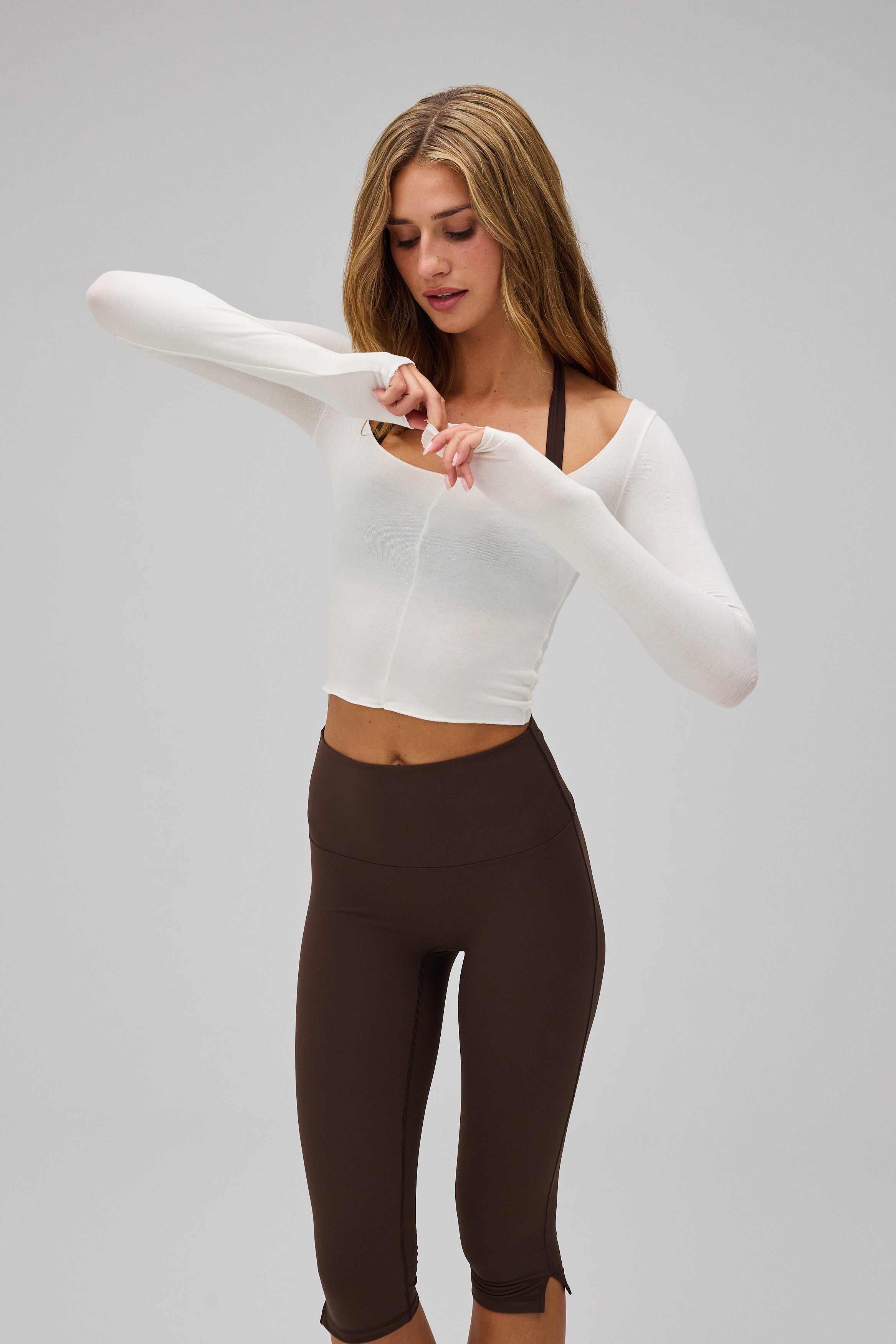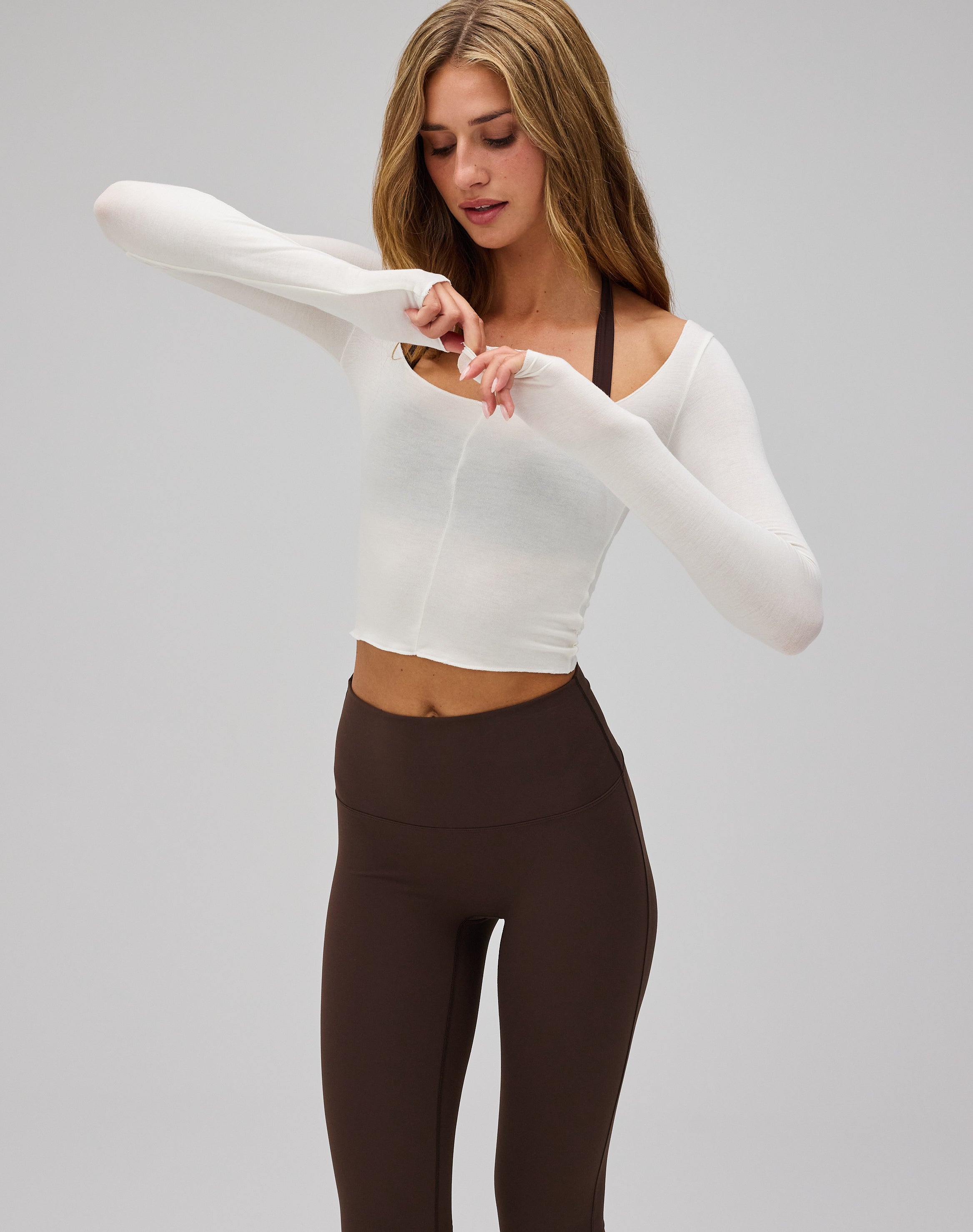 Ballet Long Sleeve Blouse forener enkelthed og funktion med en underspillet, feminin energi - et stilrent valg til både bevægelse og stille dage. Den er ideel til pilates, lettere aktiviteter, afslappede stunder eller som en elegant del af din hverdagsgarderobe.