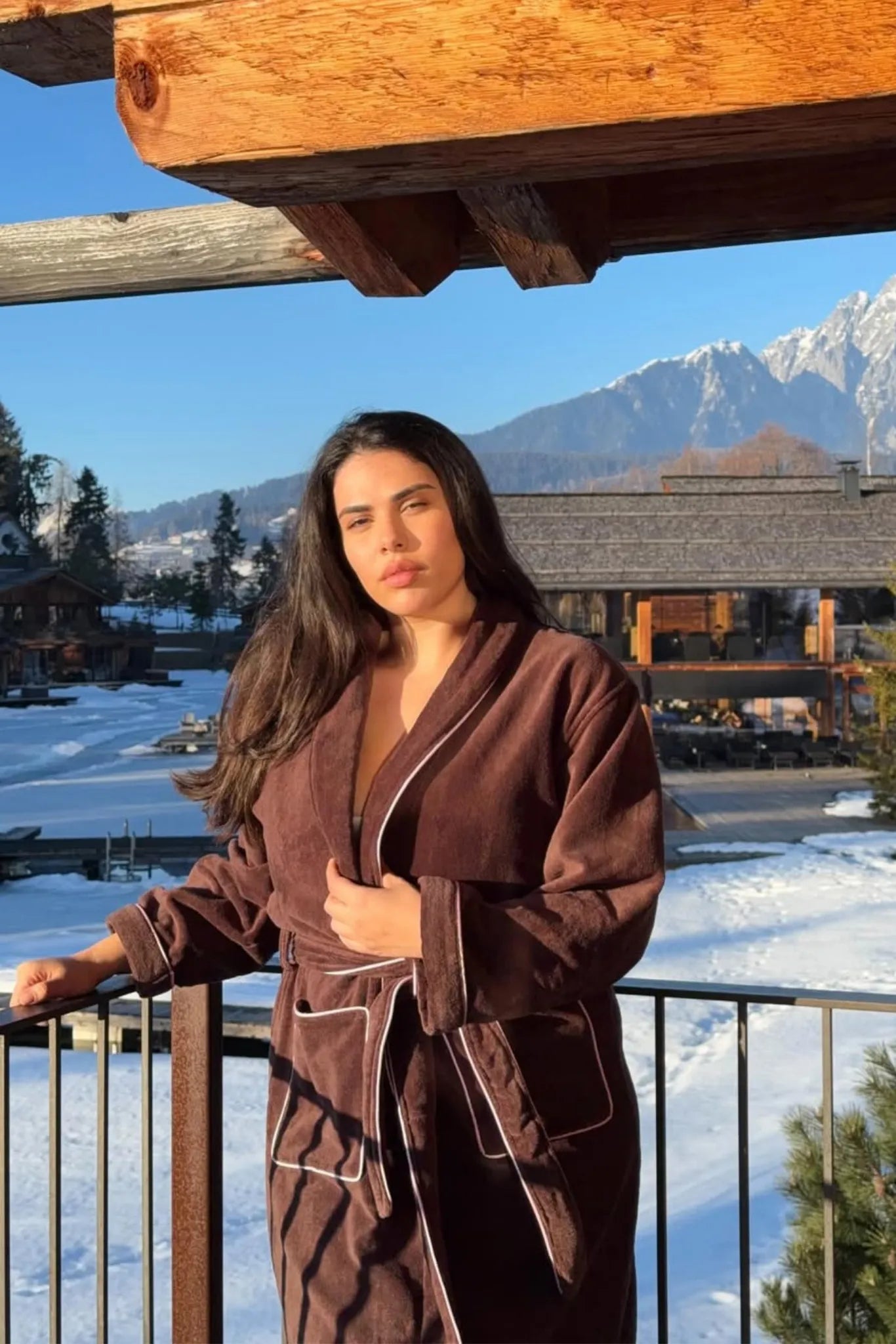 Limited Bathrobe - Pecan Brown er skabt til øjeblikke af afslapning, hvor blødhed, varme og et enkelt design smelter sammen i en helhed.