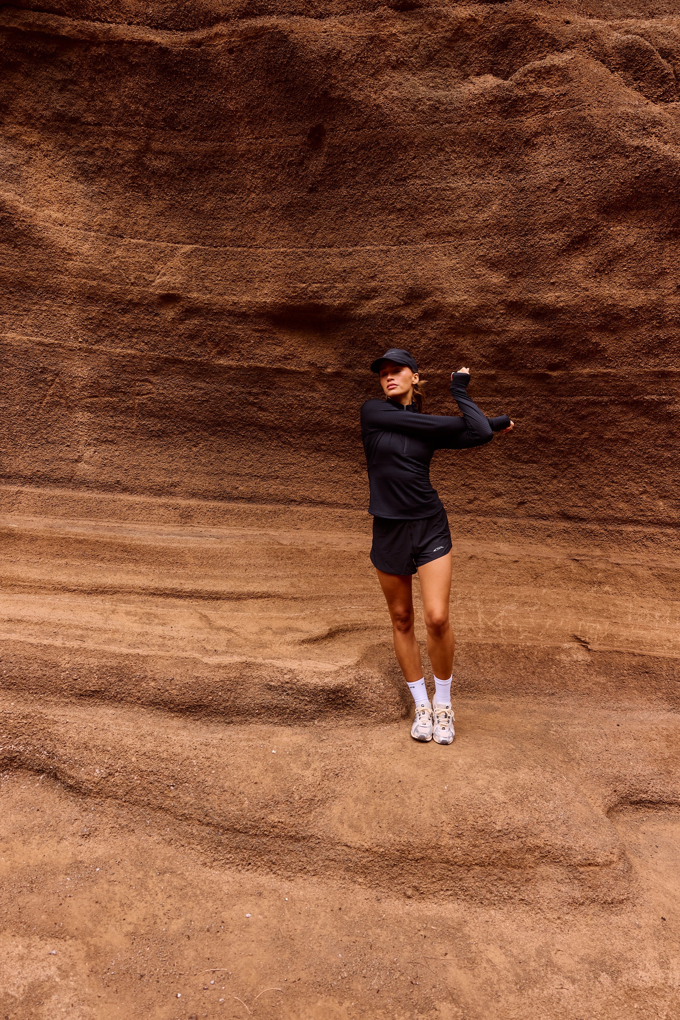 Flow Running Shorts er skabt med fokus på lethed, bevægelse og et flydende udtryk. Den løse pasform giver en ubesværet fornemmelse under løb og andre aktive stunder, hvor komfort og frihed er i fokus.