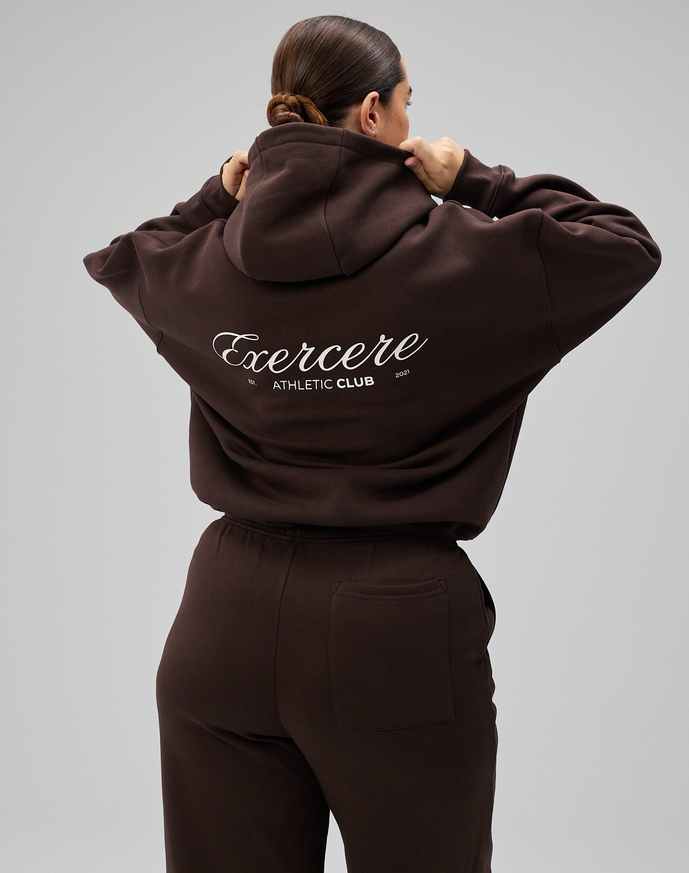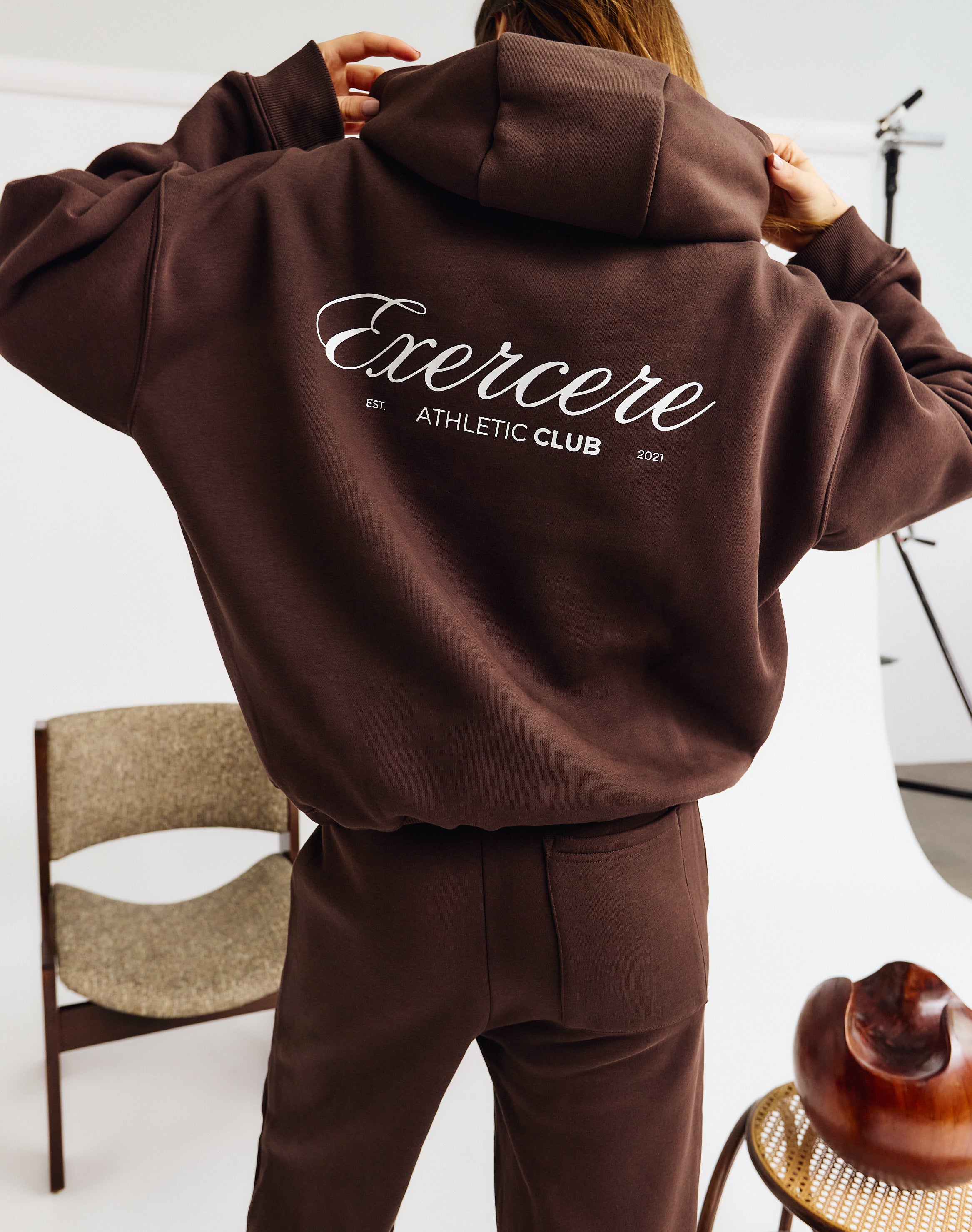 Hoodien er nem at style - særligt sammen med Wide Sweatpants - Pecan Brown for et gennemført, koordineret look, eller med activewear for et mere energisk udtryk. Athletic Club Hoodie - Pecan Brown er et alsidigt piece, der kombinerer komfort, funktion og visuel ro.