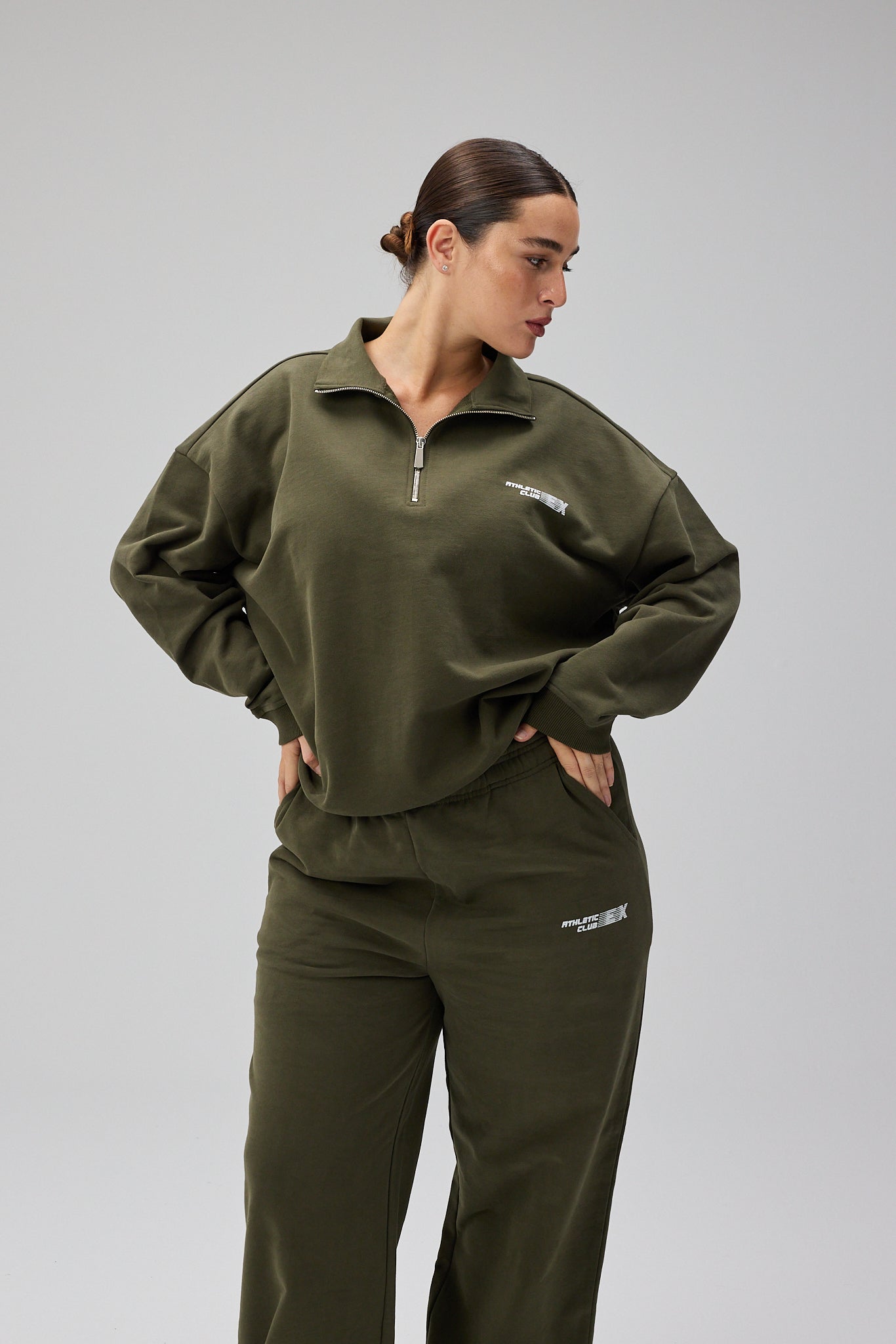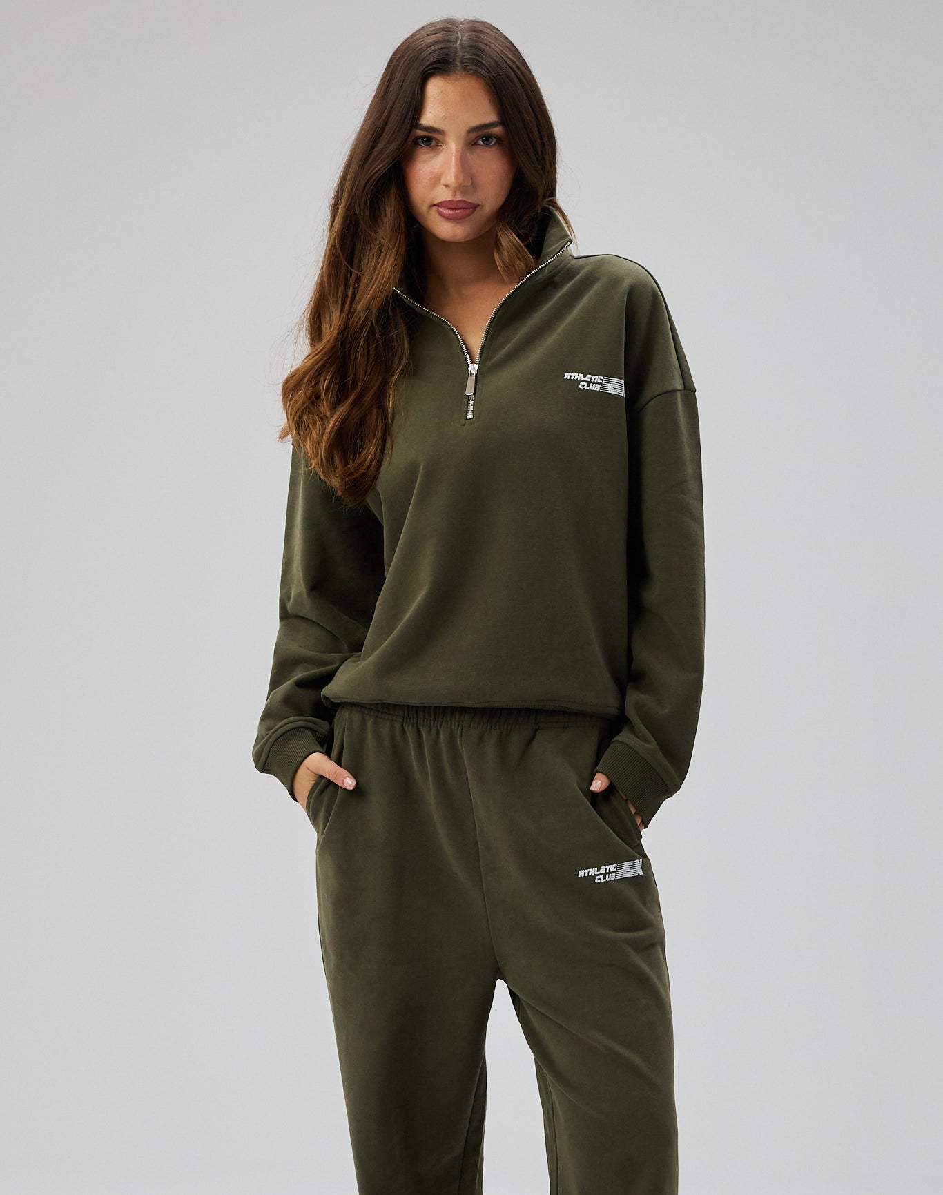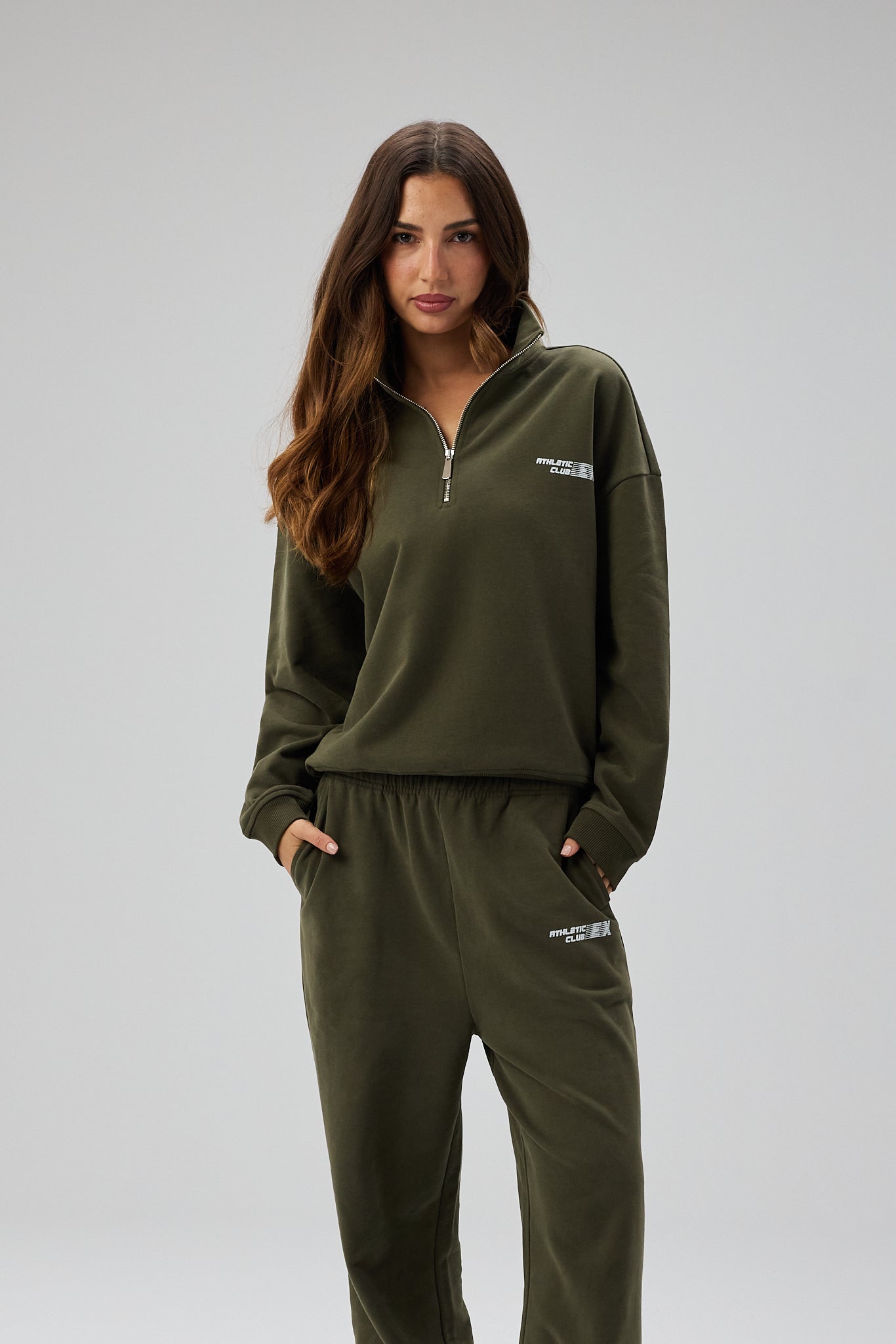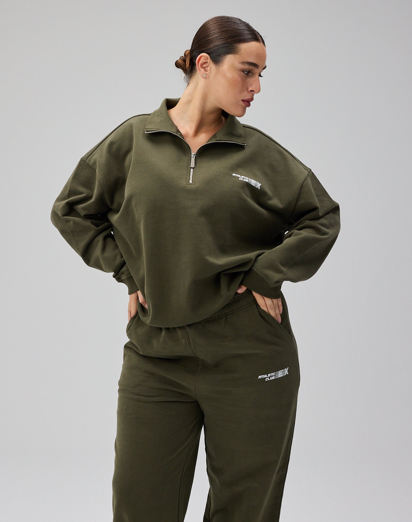 Club Classic Half Zip Sweatshirt er designet i en dyb, sæsonpræget grøn nuance, der kombinerer stilren minimalisme med funktionel alsidighed. Den afslappede, men velafbalancerede silhuet skaber et casual men chic udtryk, mens half-zip detaljen giver mulighed for at variere looket mellem åbent og laidback eller mere samlet og sporty.