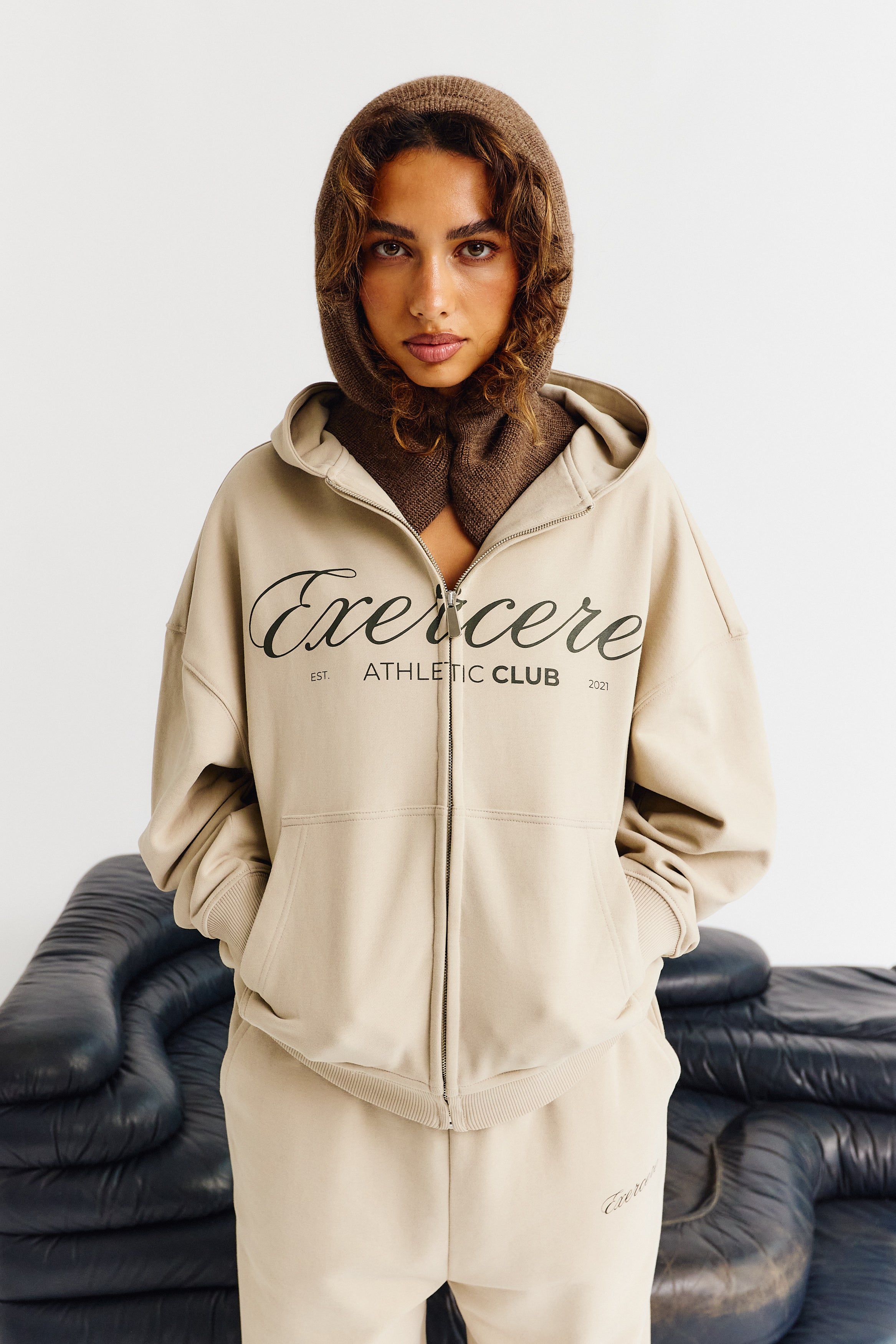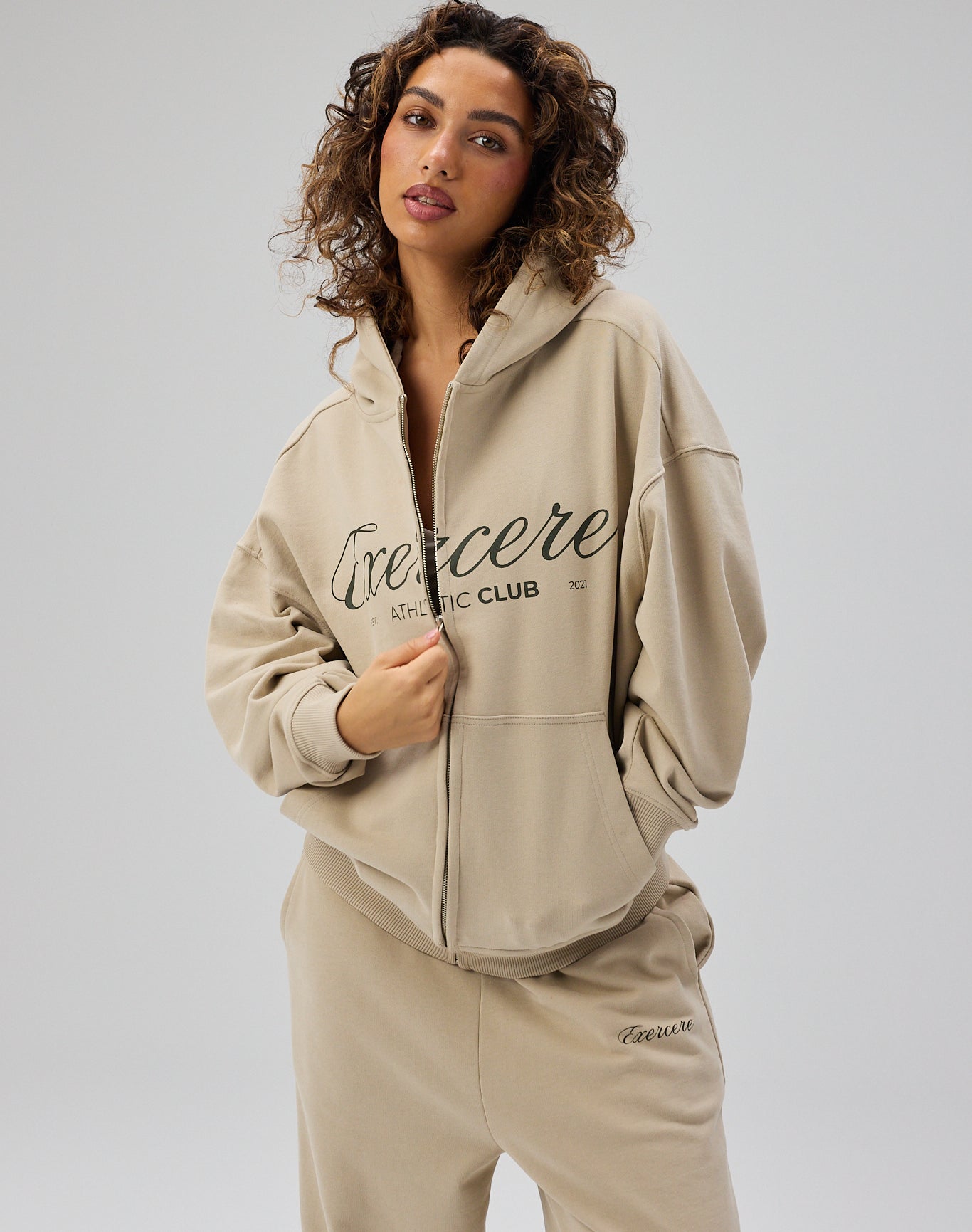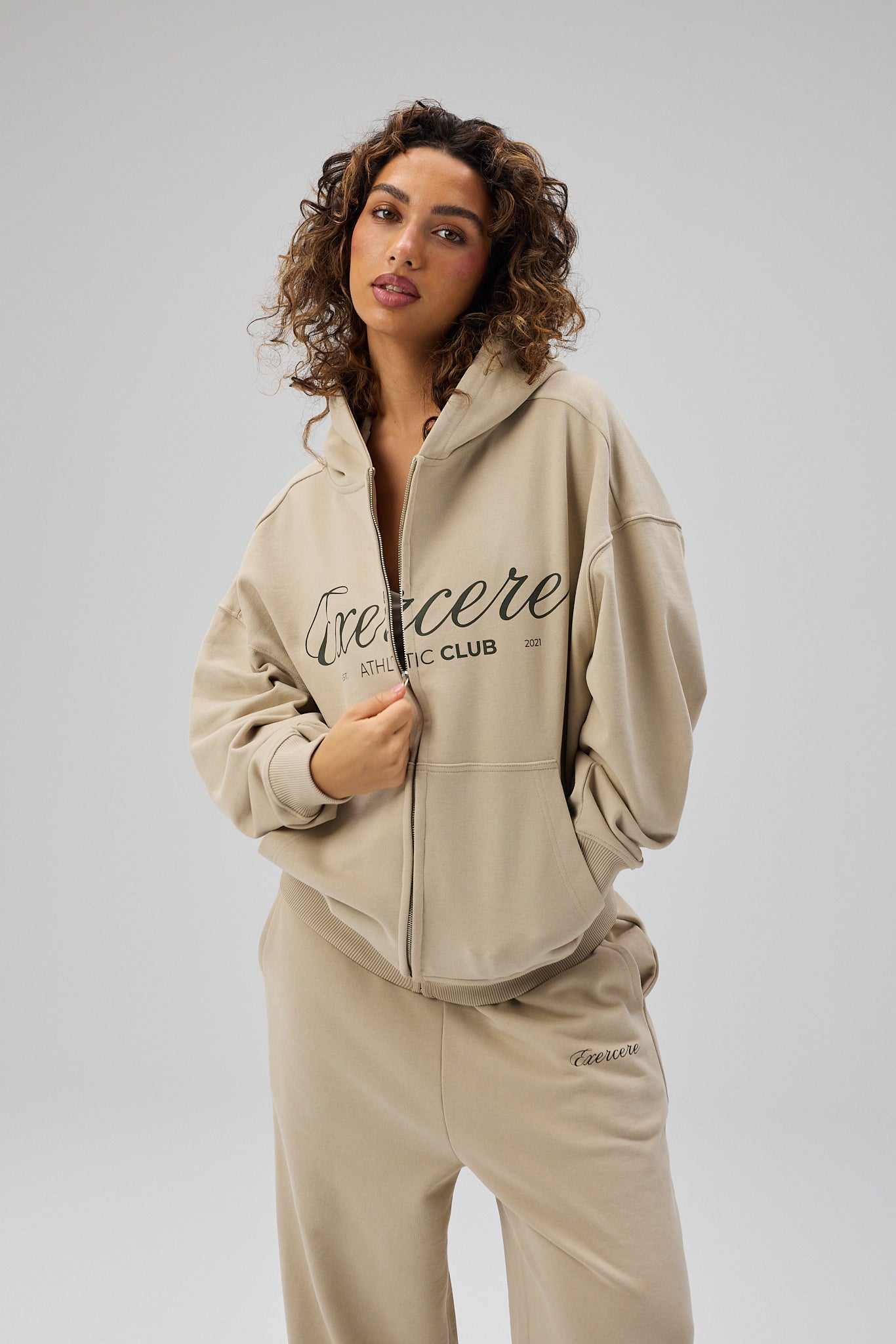 Signature Script Zip Hoodie er designet i en kølig beige tone, der giver et roligt og moderne udtryk. Den bløde, afslappede silhuet gør hoodien både komfortabel og alsidig, mens lynlåsen foran giver mulighed for at bære den lukket for et mere samlet look eller åben for en let og ubesværet vibe.