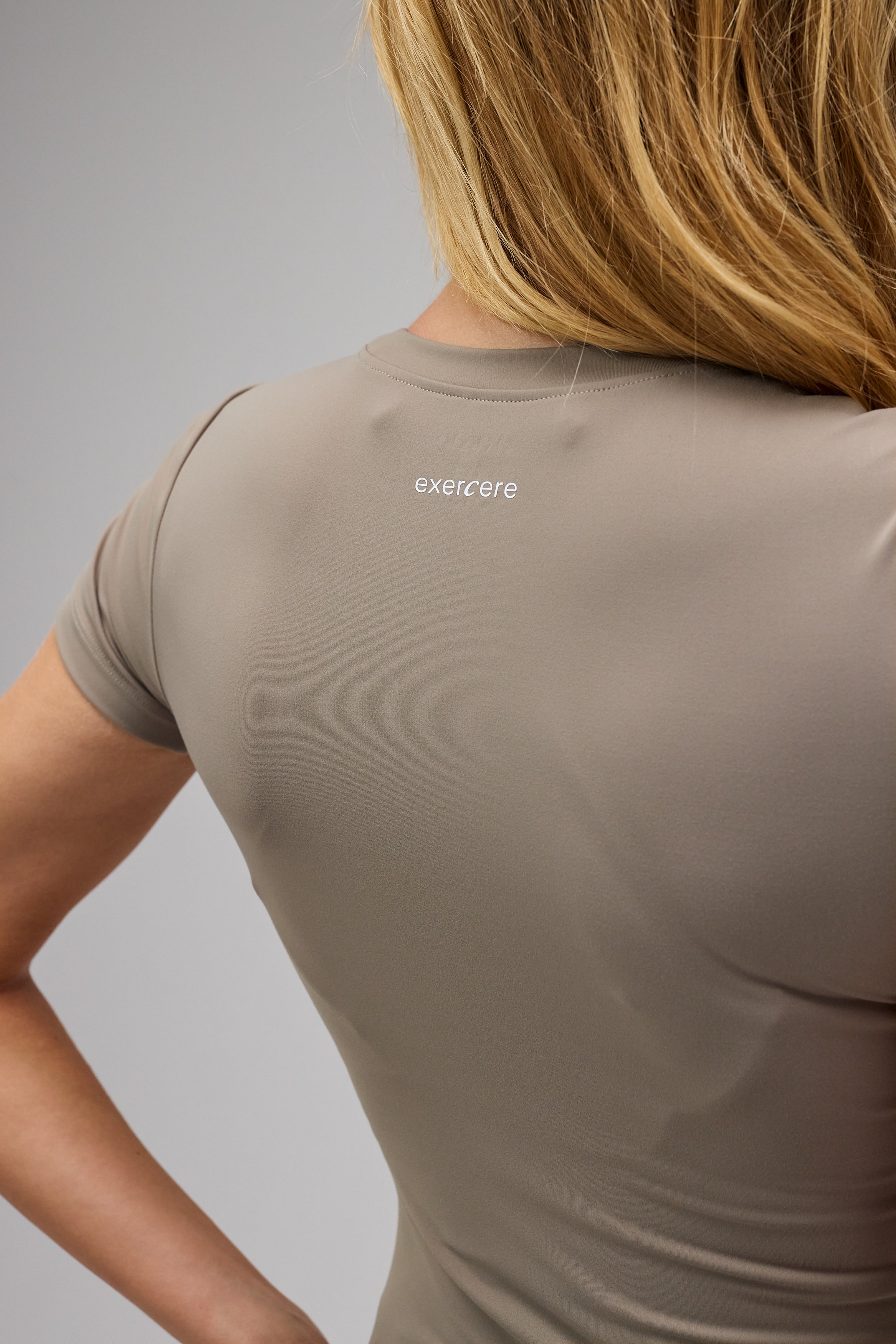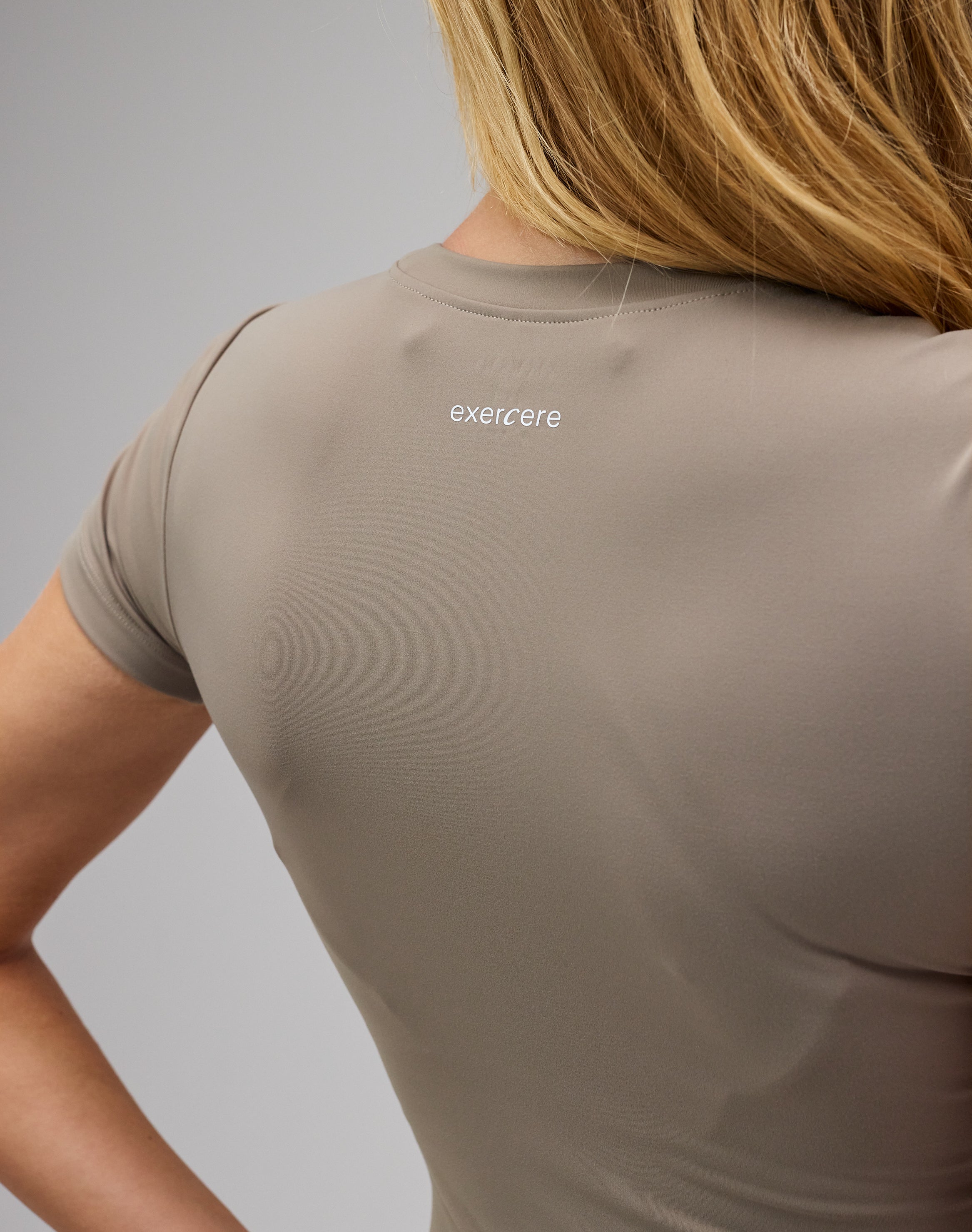 - Model har Neaty Tee Sand Beige på, og bruger størrelse XS