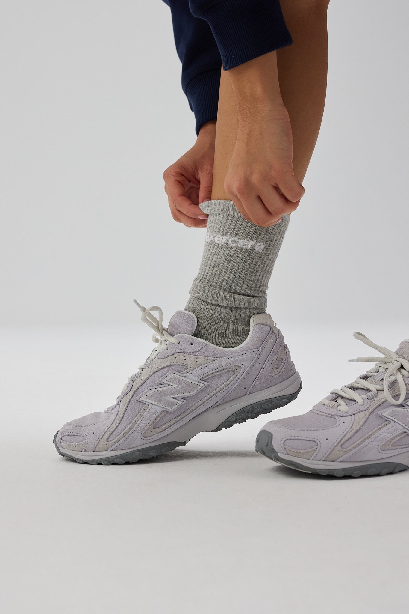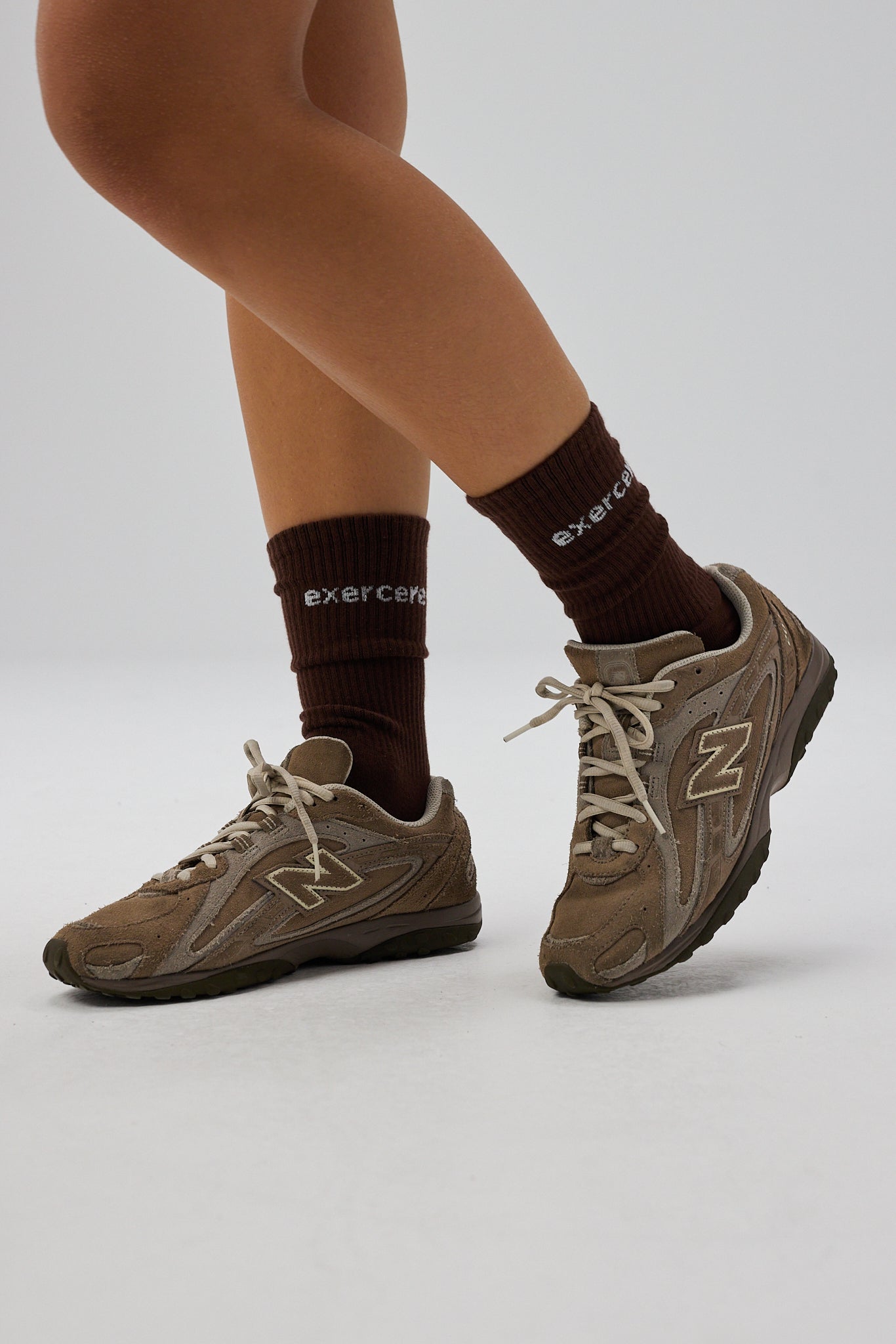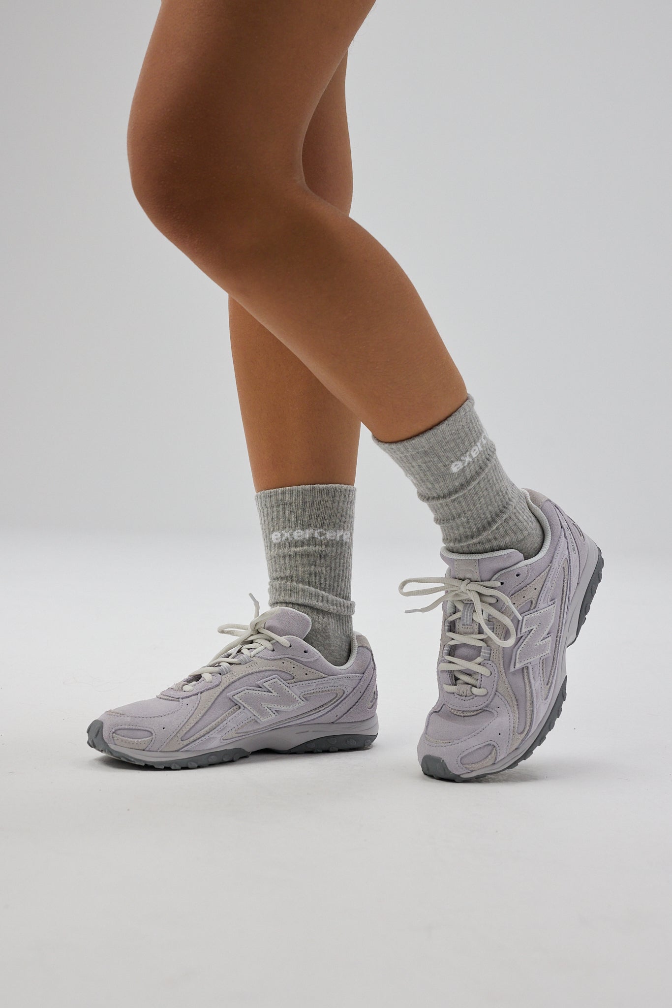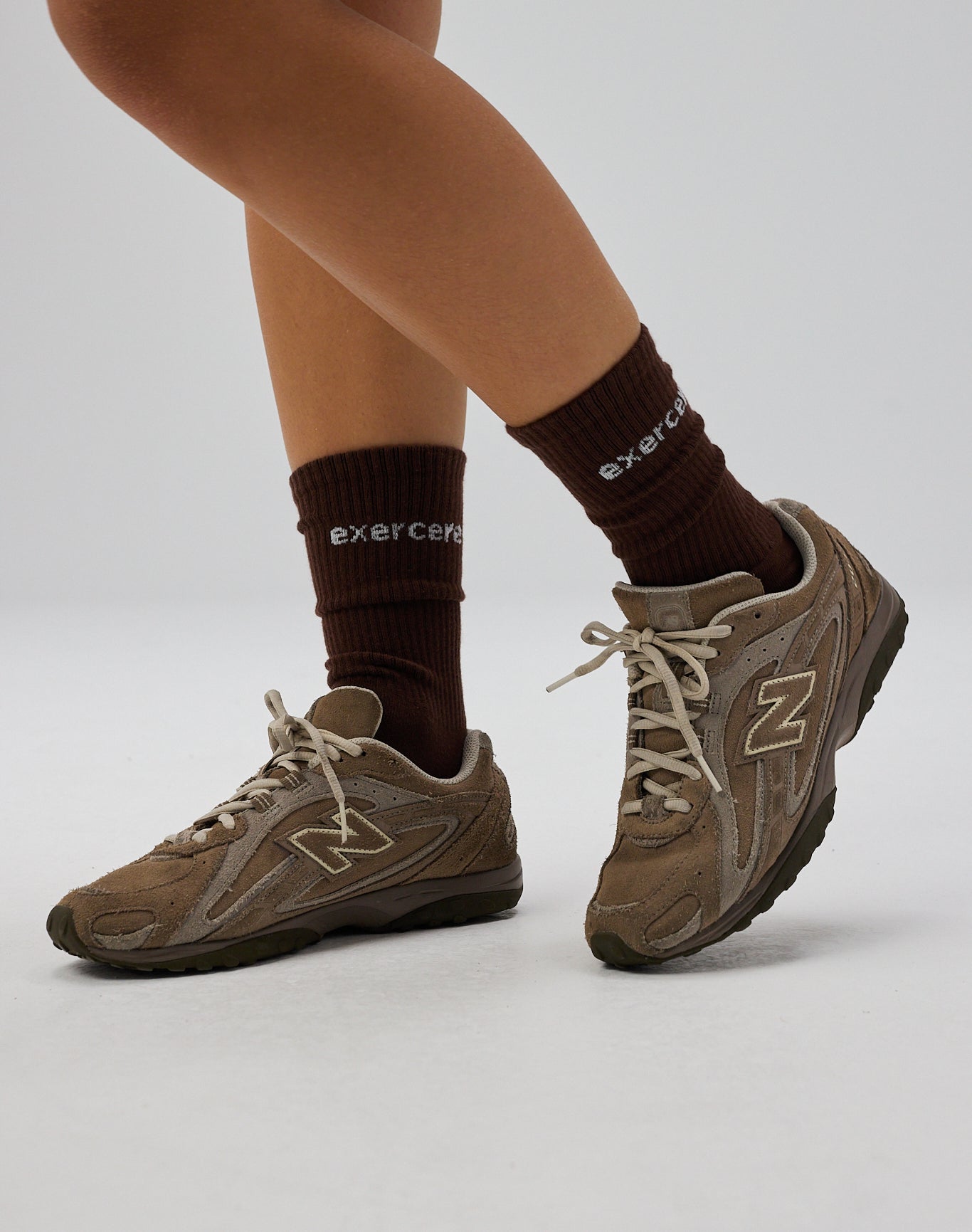 Exercere-logoet er diskret placeret på siden og tilfører et enkelt, genkendeligt element til det rene design. Den ribstrikkede struktur bidrager med elasticitet og et tidløst, sporty præg, der gør sokkerne velegnede til både træning og hverdagsbrug.