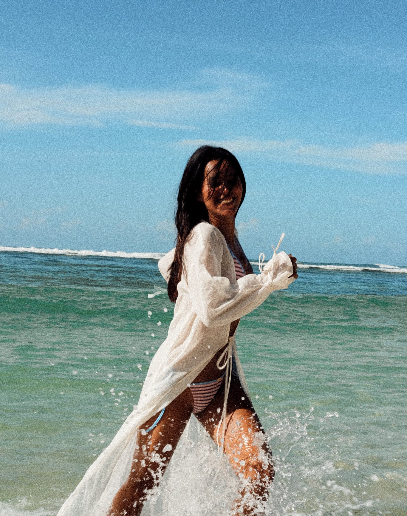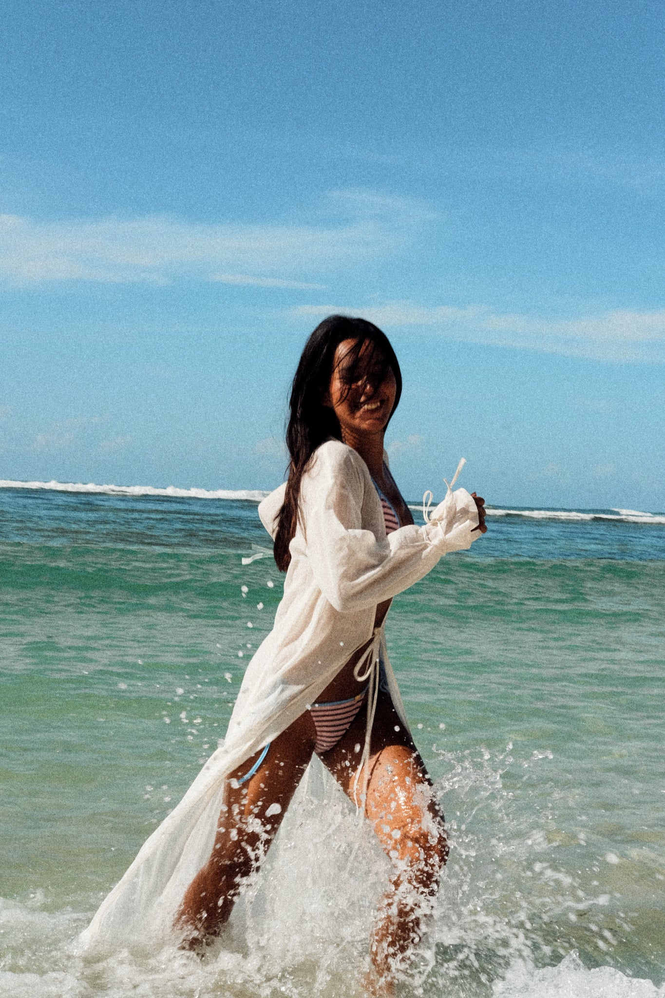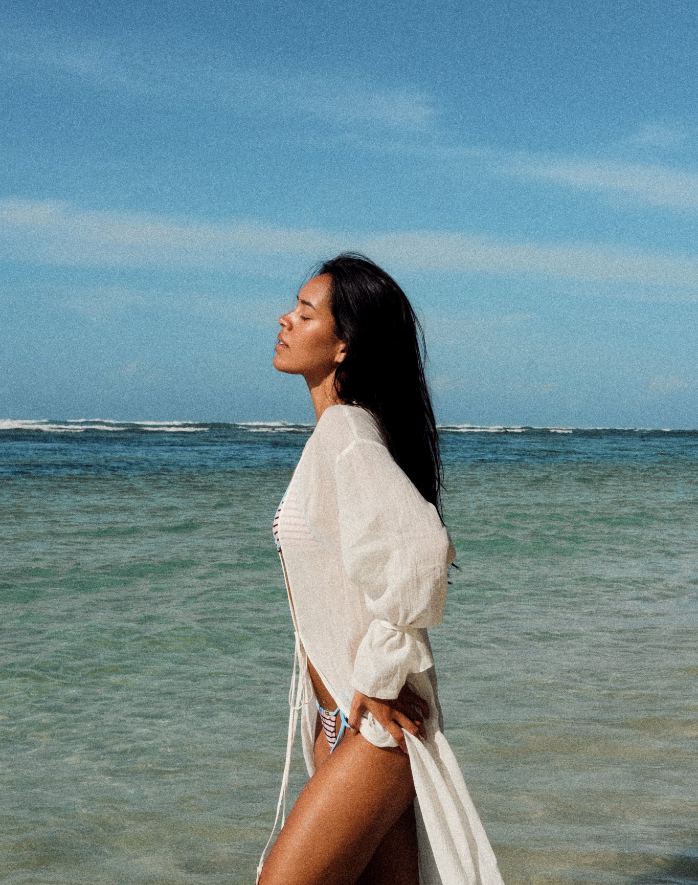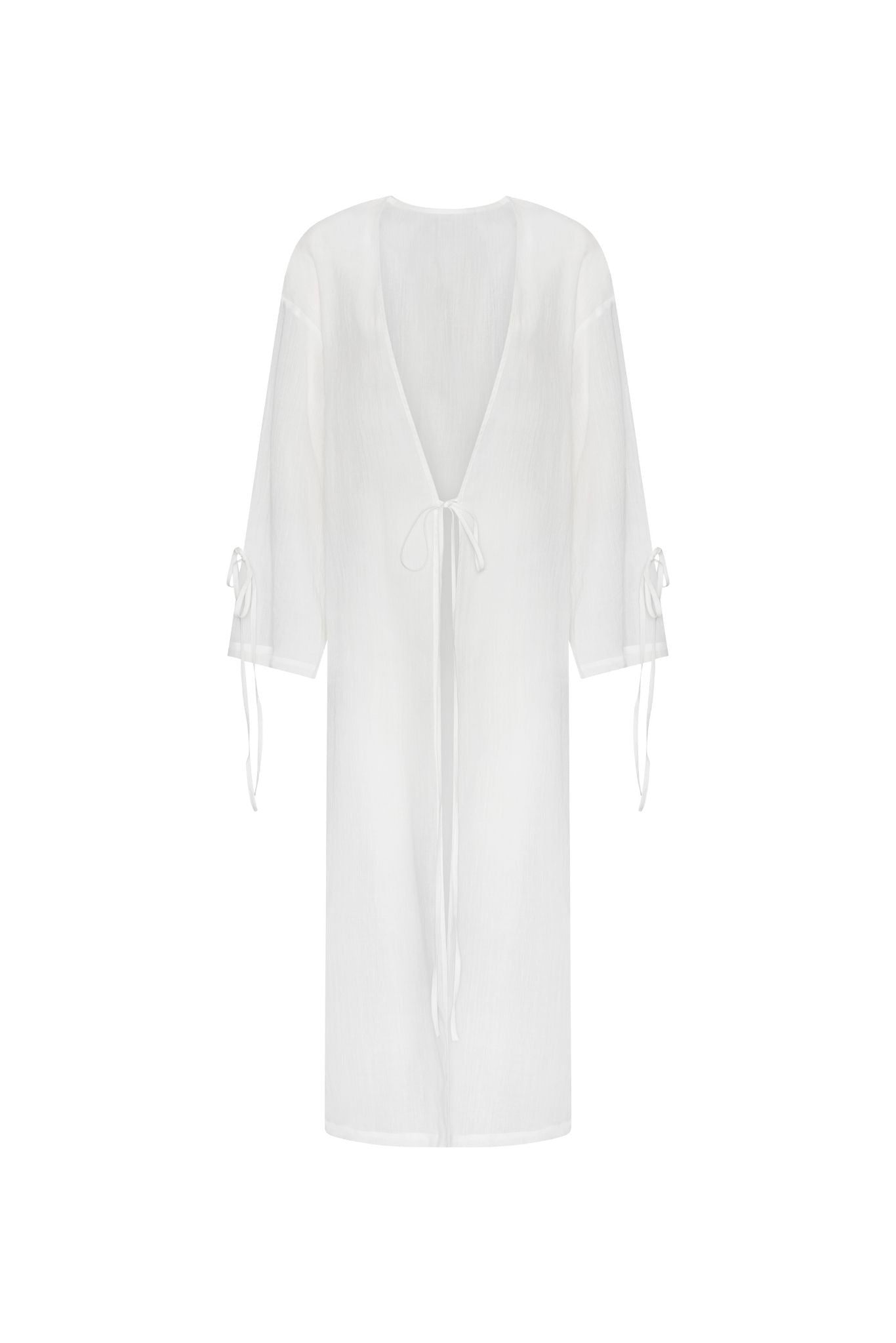 Kimonoen kan bindes i taljen, hvilket giver mulighed for at tilpasse pasformen og skabe variation i udtrykket. De fine ærmedetaljer tilfører et blødt og gennemtænkt præg, der understøtter det lette og feminine design. Breeze Kimono er et stilrent sommerlag, der falder ubesværet over kroppen og fuldender et let og elegant udtryk - ideel over en bikini på solrige dage.