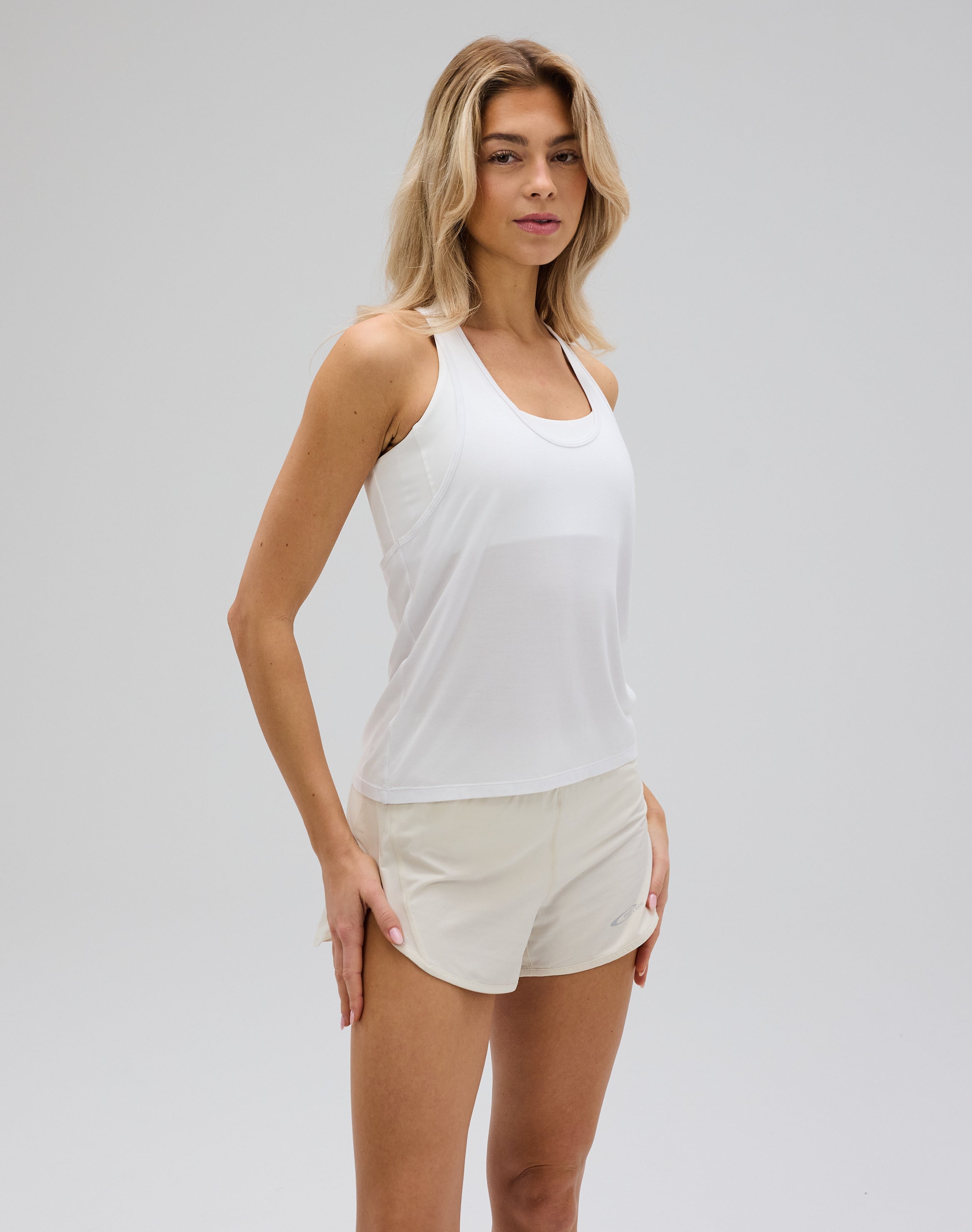 Flow Racer Tank Top er designet med et let og luftigt udtryk, der giver en fri og ubesværet fornemmelse i bevægelse. Den løse pasform gør toppen ideel som et ekstra lag, der nemt kan bæres udenover en sports-bh eller top under træning og andre aktive stunder.