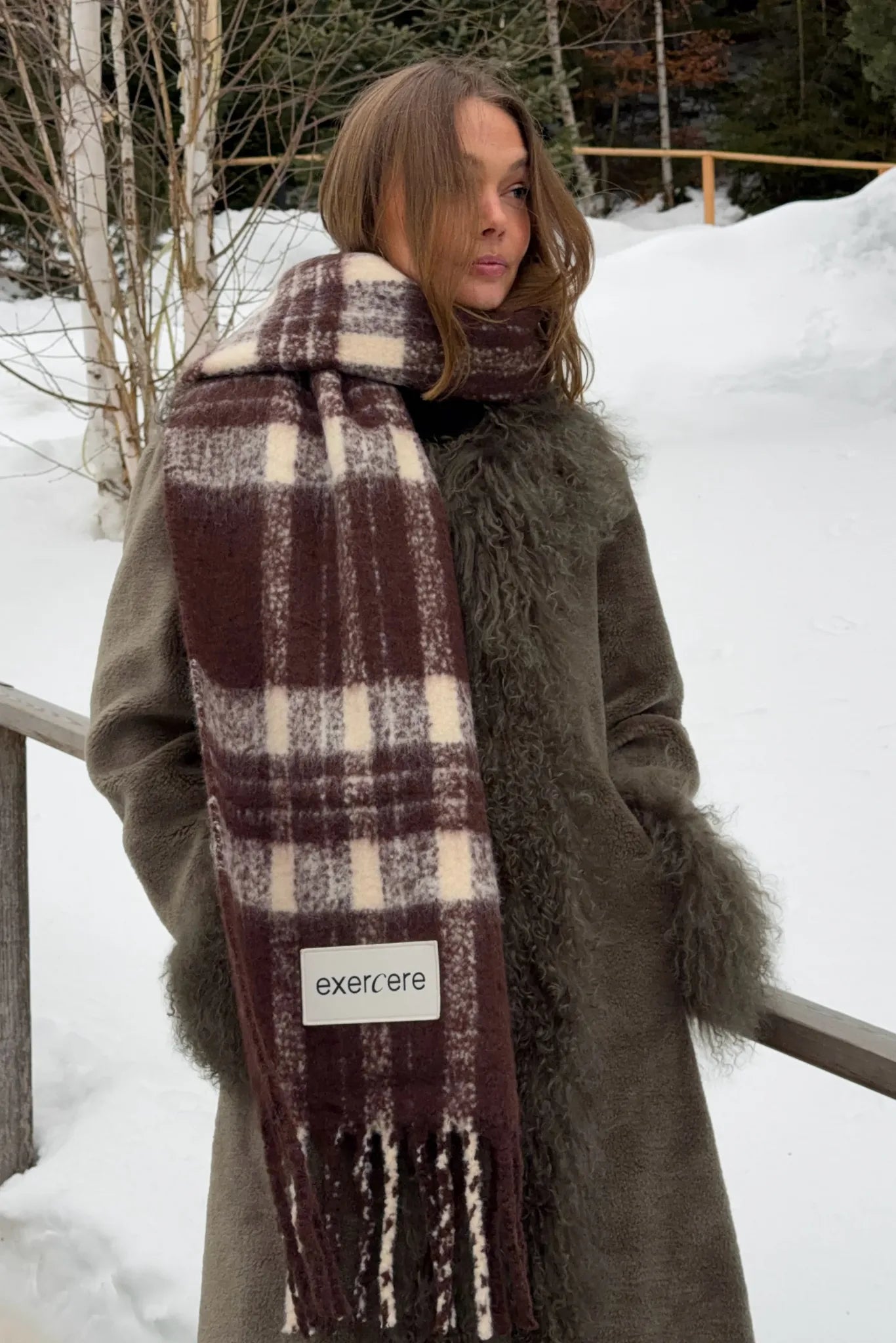 Limited Check Fringe Scarf kombinerer varme, komfort og et klassisk udtryk i et enkelt og gennemført design. Det ternede mønster i varme pecan-brune og off-white nuancer giver tørklædet et tidløst look, mens de fine fringe-detaljer tilfører bevægelse og karakter.