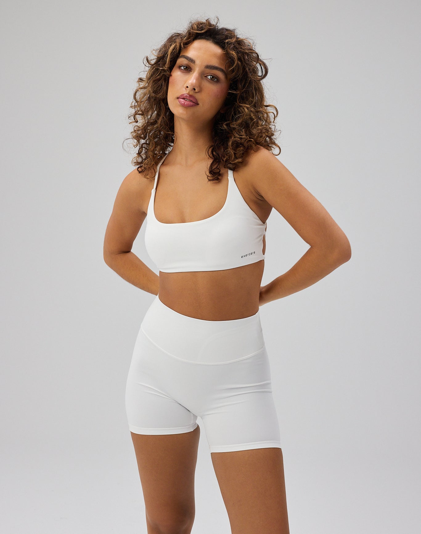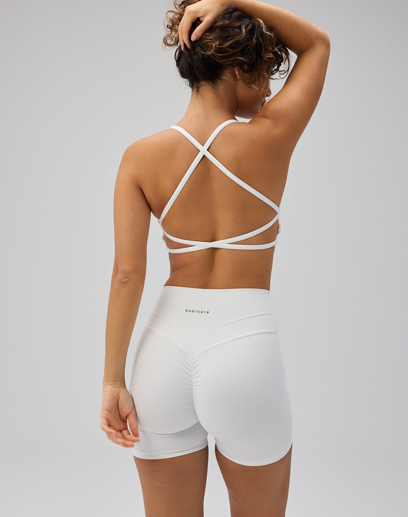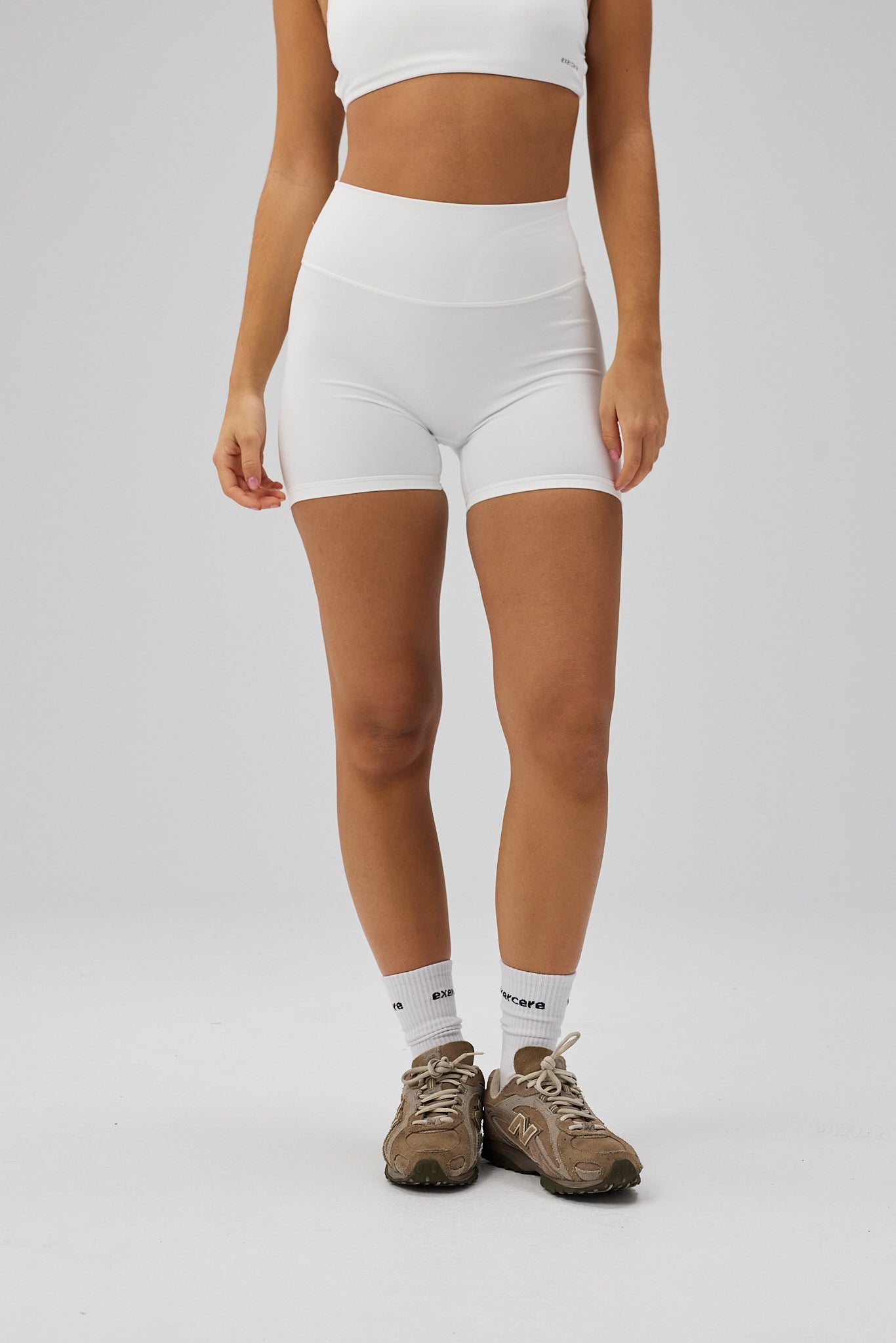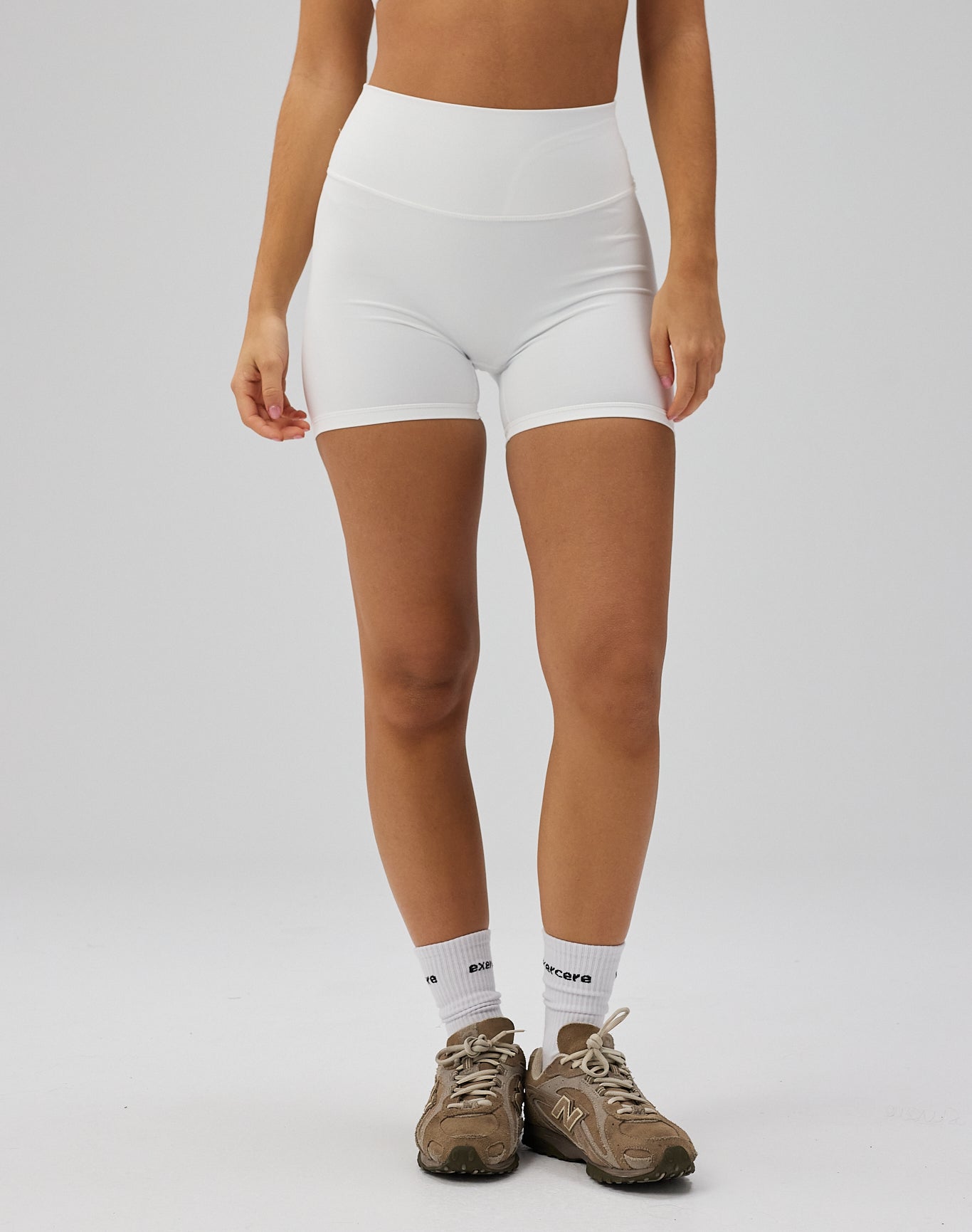 - Model har Sculpt Scrunch Shorts, White på og bruger størrelse S