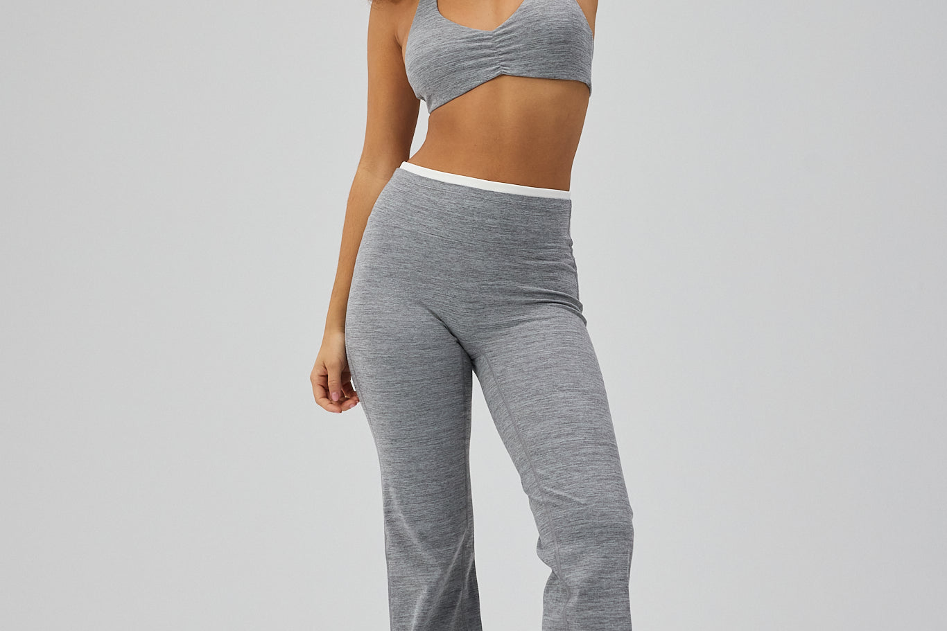 Double Lining Flare Pants - Grey Melange