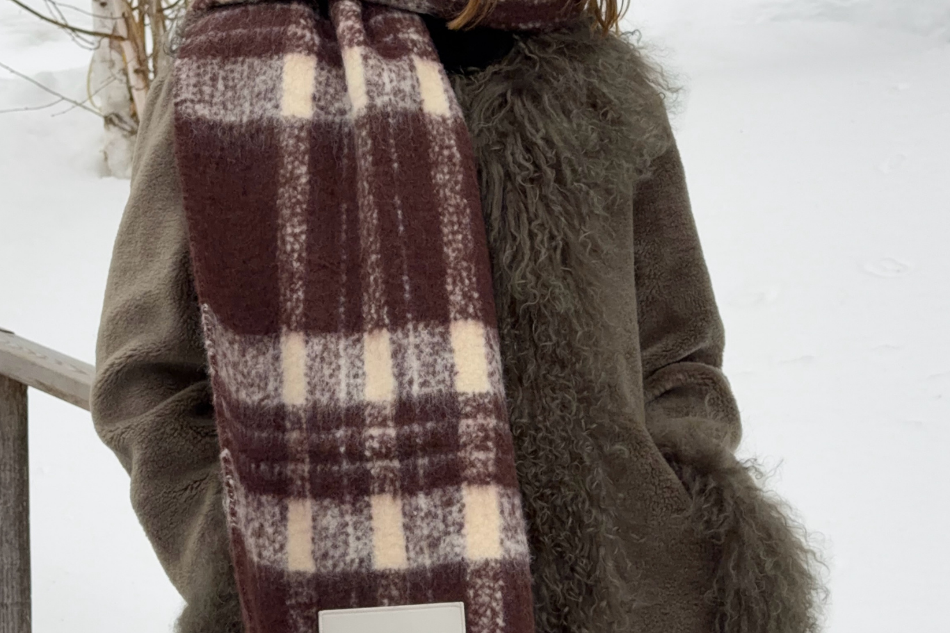 Limited Check Fringe Scarf kombinerer varme, komfort og et klassisk udtryk i et enkelt og gennemført design. Det ternede mønster i varme pecan-brune og off-white nuancer giver tørklædet et tidløst look, mens de fine fringe-detaljer tilfører bevægelse og karakter.