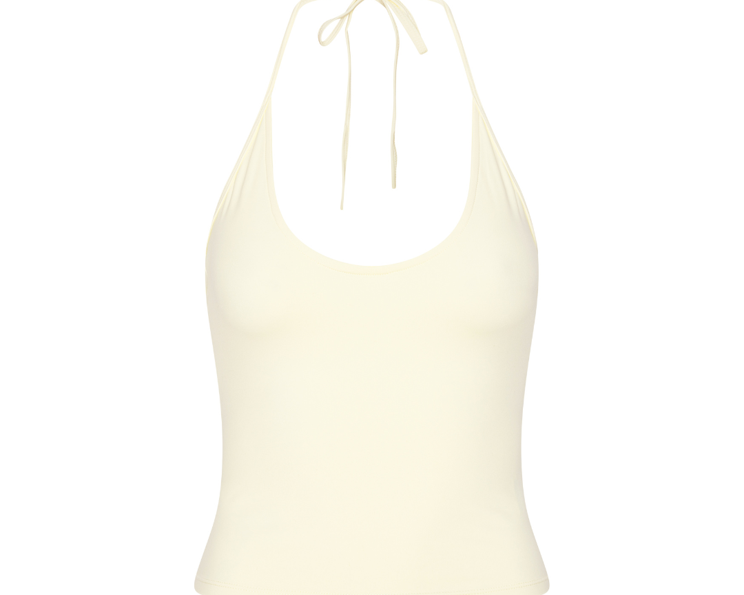 Neaty Halter Tank Top kan styles alene for et minimalistisk look eller som base under lette lag. En tidløs top med fokus på komfort, blødhed og æstetik - perfekt til varme dage og afslappende øjeblikke.