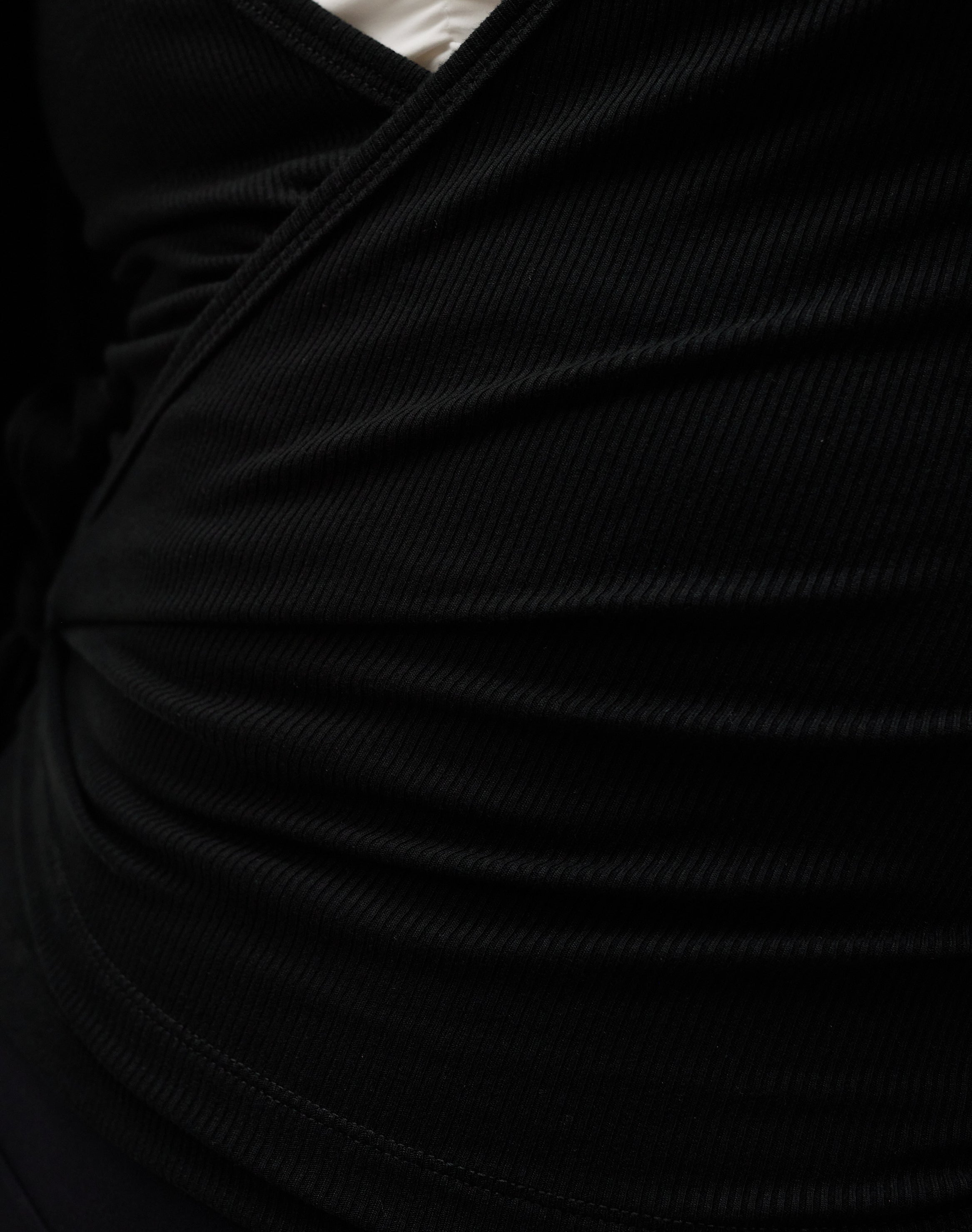 Rib Ballet Wrap Blouse forener et feminint udtryk med en fin ribstruktur, der tilfører designet diskret tekstur. Den langærmede silhuet er udført i et blødt og elastisk ribmateriale, som føles behageligt mod huden og følger kroppens bevægelser med naturlig lethed.