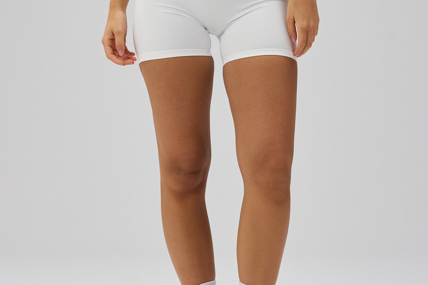 Træningshorts med scrunch. Baseret på yndlingstightsene, den pasform i elsker! Materialet er strækbart og blødt, som huden let kan ånde i. De har den perfekte længde, som ikke afslører for meget og kryber op når man træner. De har fine detaljer bagpå som giver et fremhæver formerne og giver et løftende og rundere udtryk.